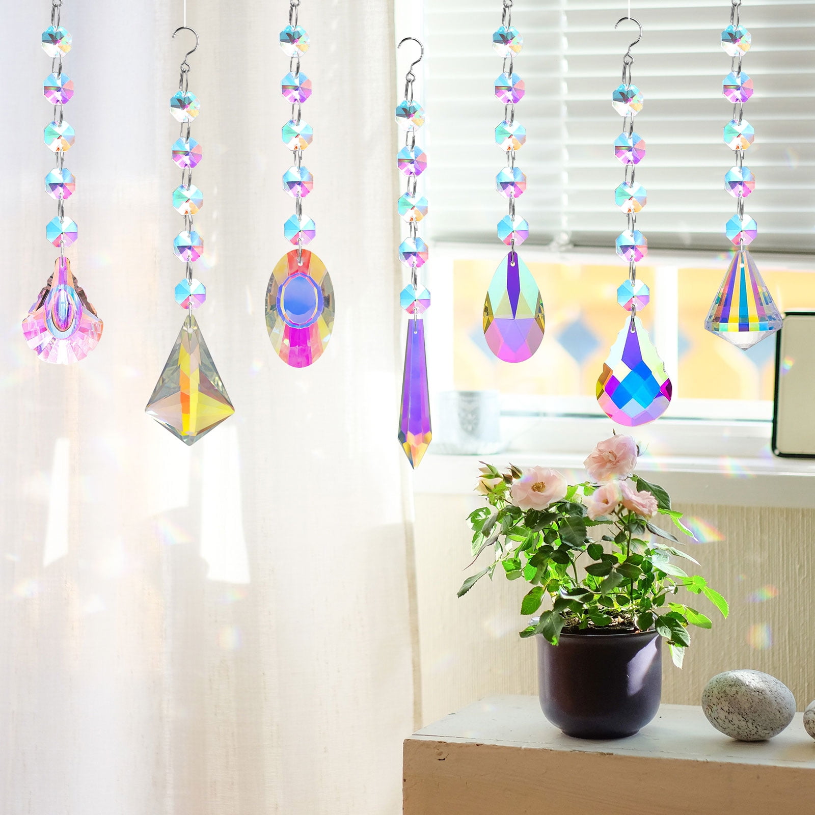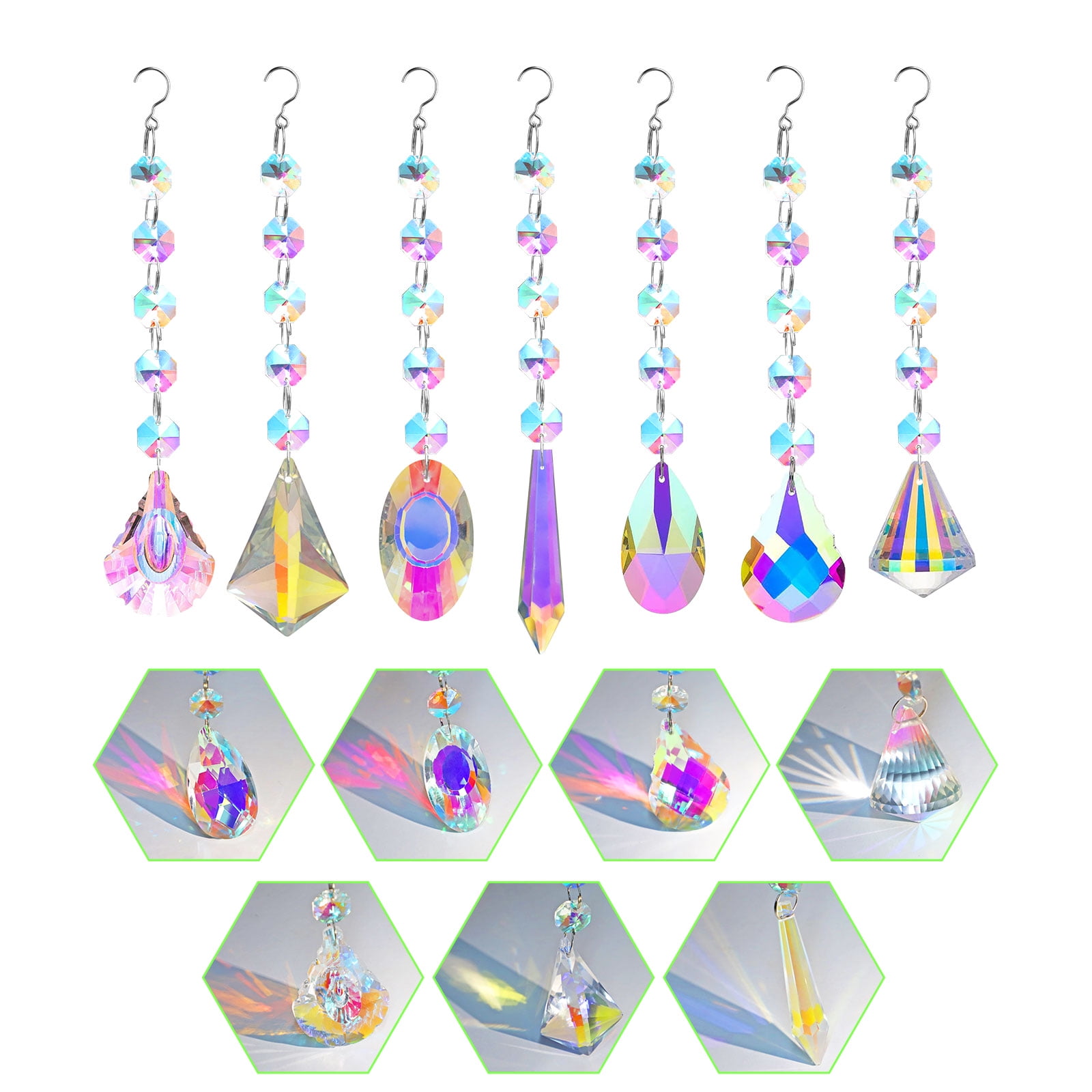 7pcs Hanging Crystal Suncatchers, EEEkit Rainbow Maker Sun Catchers for Window, Crystals Ball Prisms Suncatcher Hanging Pendant Ornament for Home Office Garden Decoration