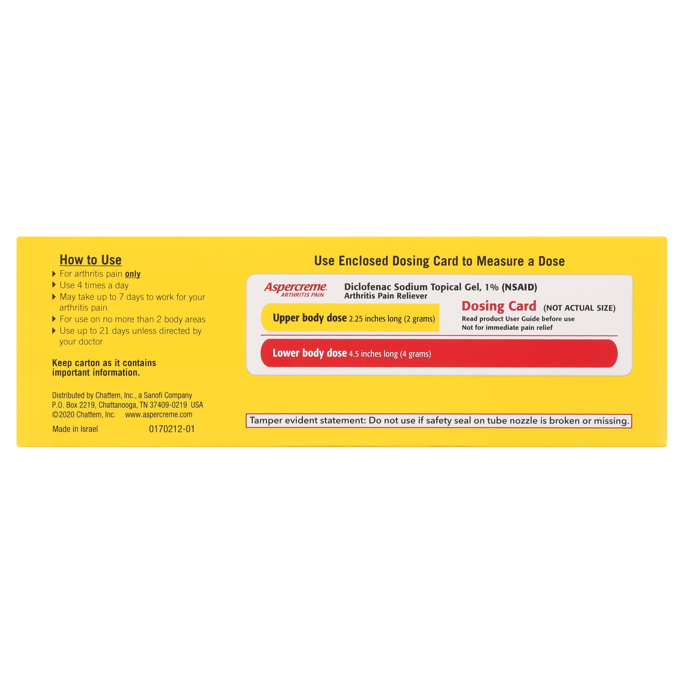 - Contains one (1) 150-gram tube of Aspercreme Arthritis Pain Relief Gel