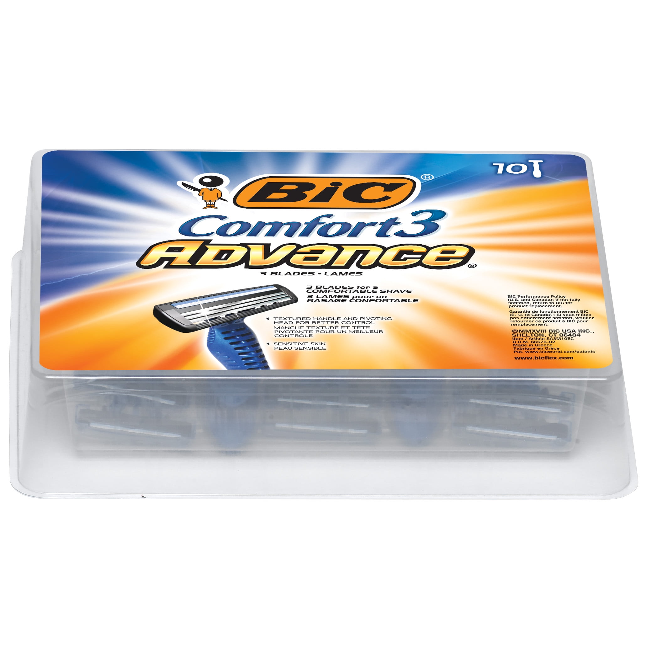 BIC Comfort 3 Advance Men’s 3-Blade Disposable Razor, 10 Count