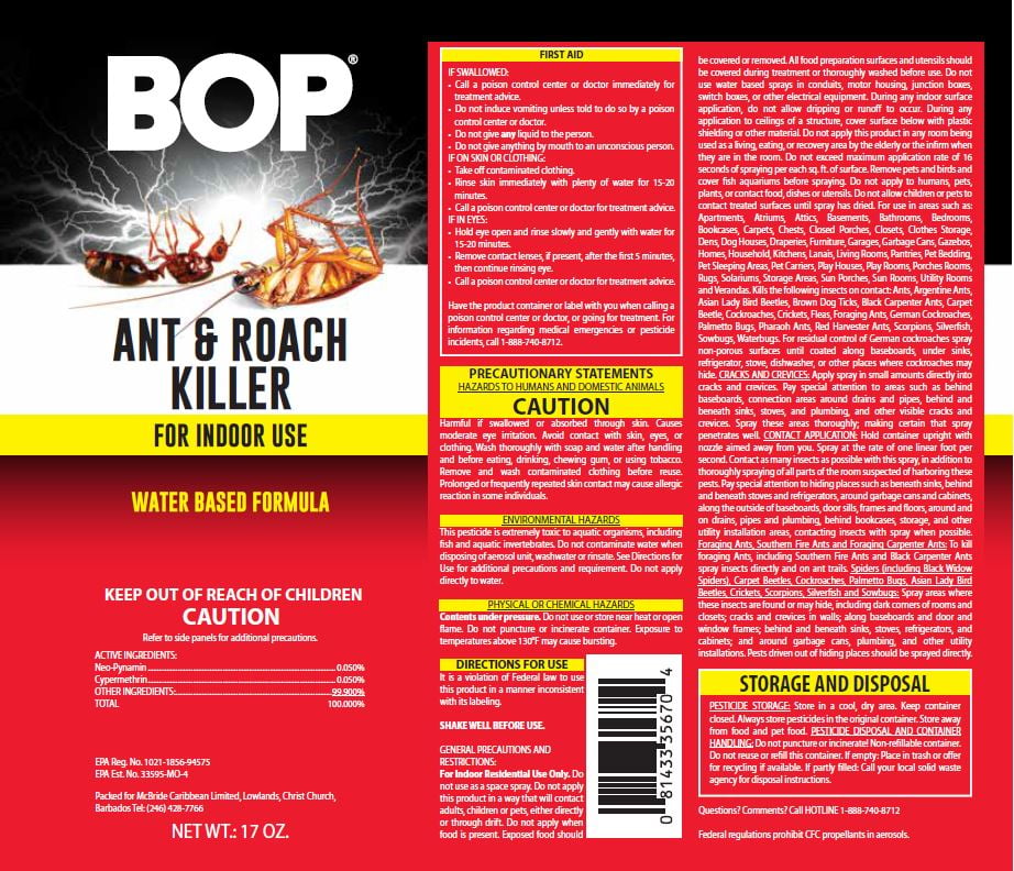 - THEY SURVIVED THE ICE AGE. THEY HAD THEIR TIME. Cockroaches aren’t harmless. Just ask anyone who’s fallen off a chair while trying to get away from one. They can also spread dangerous bacteria onto anything they encounter. BOP Ant & Roach Killer kills insects on contact to end the drama and accidentally self-inflicted injuries they cause.