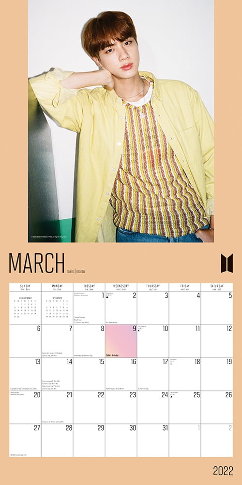 BTS, known as the Bangtan Boys is extremely popular South Korean boy band. Consisting of 7 members, they co-write and produce much of their output. The band started in hip hop but has since evolved to include a wide range of genres. Their lyrics, often focused on personal and social commentary, touch on the themes of mental health, troubles of school-age youth, loss, the journey towards loving oneself, and individualism. Decorate your home, office or kitchen wall with high quality photos from the BTS monthly calendar.