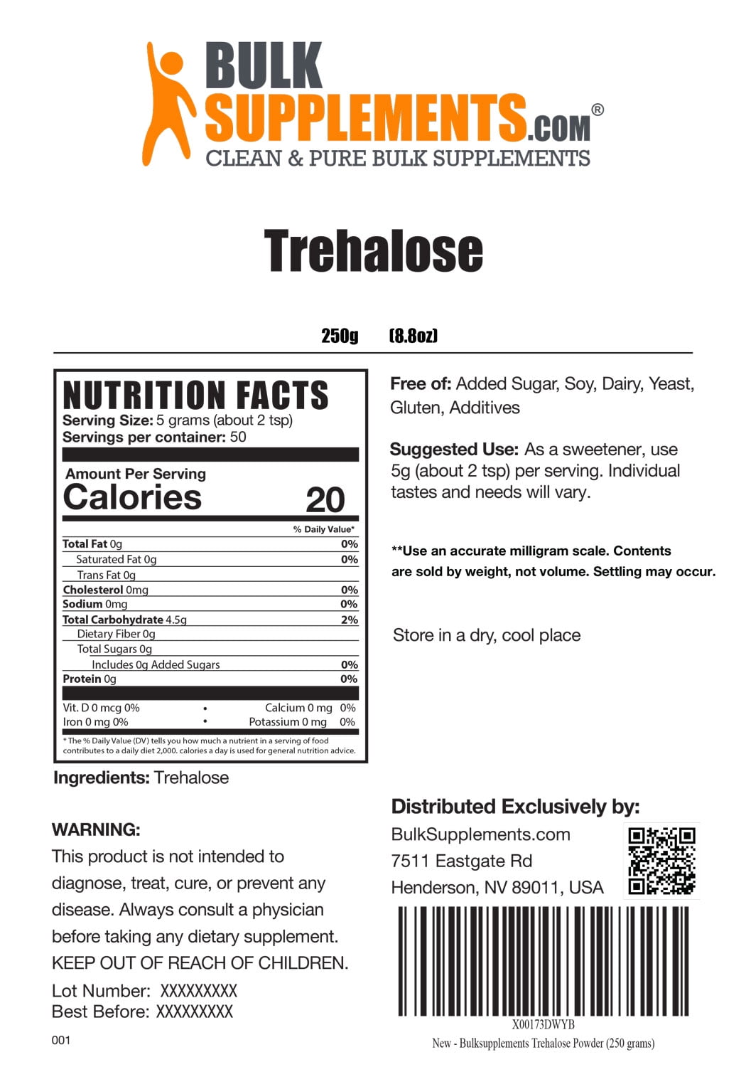 Trehalose sugar is a sweetener that also acts as an antioxidant in the body.† Trehalose sugar may also support liver function, brain function, and dental health.†