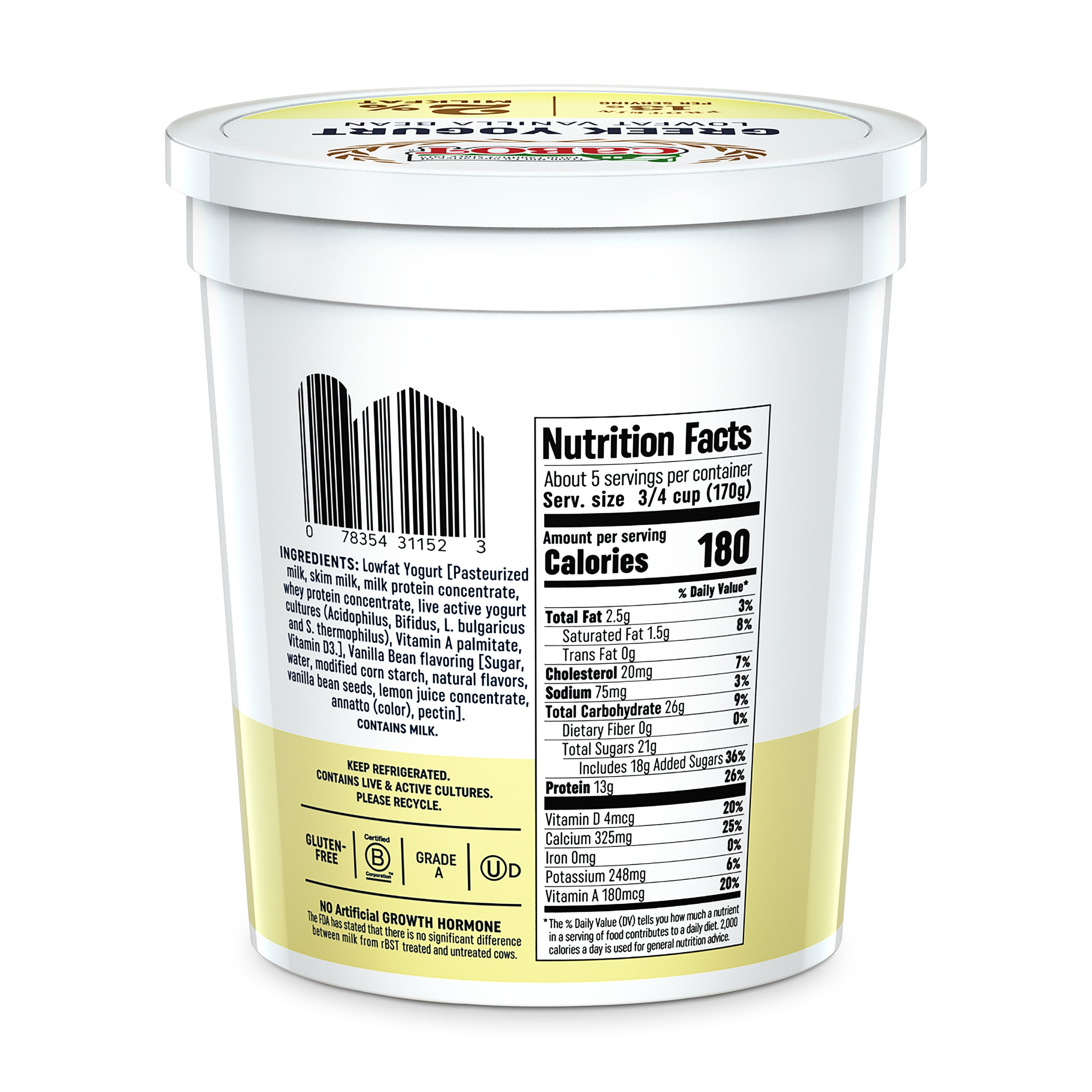 We think of Cabot’s Vanilla Bean Greek Yogurt as a guiltless pleasure! Made with 2% milk, it’s low in fat but high in snack satisfaction. Enjoy the sweet, natural vanilla flavor of this creamy, protein packed yogurt that tastes great on its own, and makes a special treat when blended with fresh fruits.