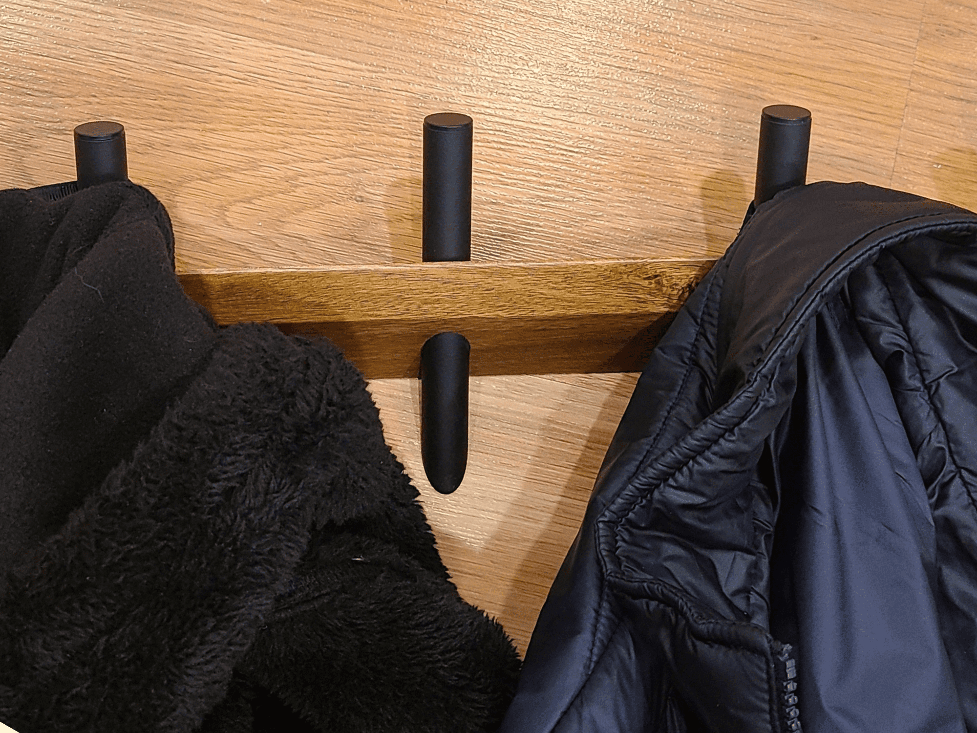 iDesign Wall Mounted Rack-Sturdy Wood with 5 Metal Pegs-Screws and Anchors Included