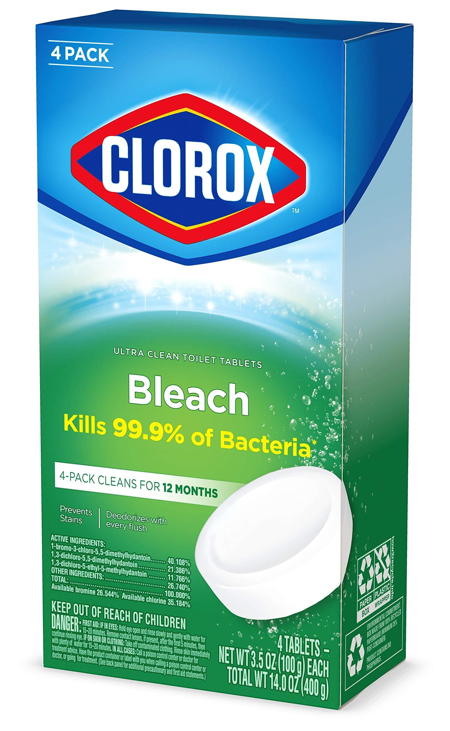 - TOILET BOWL CLEANER: Clorox Automatic Toilet Bowl Cleaner tablets kill 99.9% of household bacteria and sanitizes, cleans, and deodorizes your toilet bowl