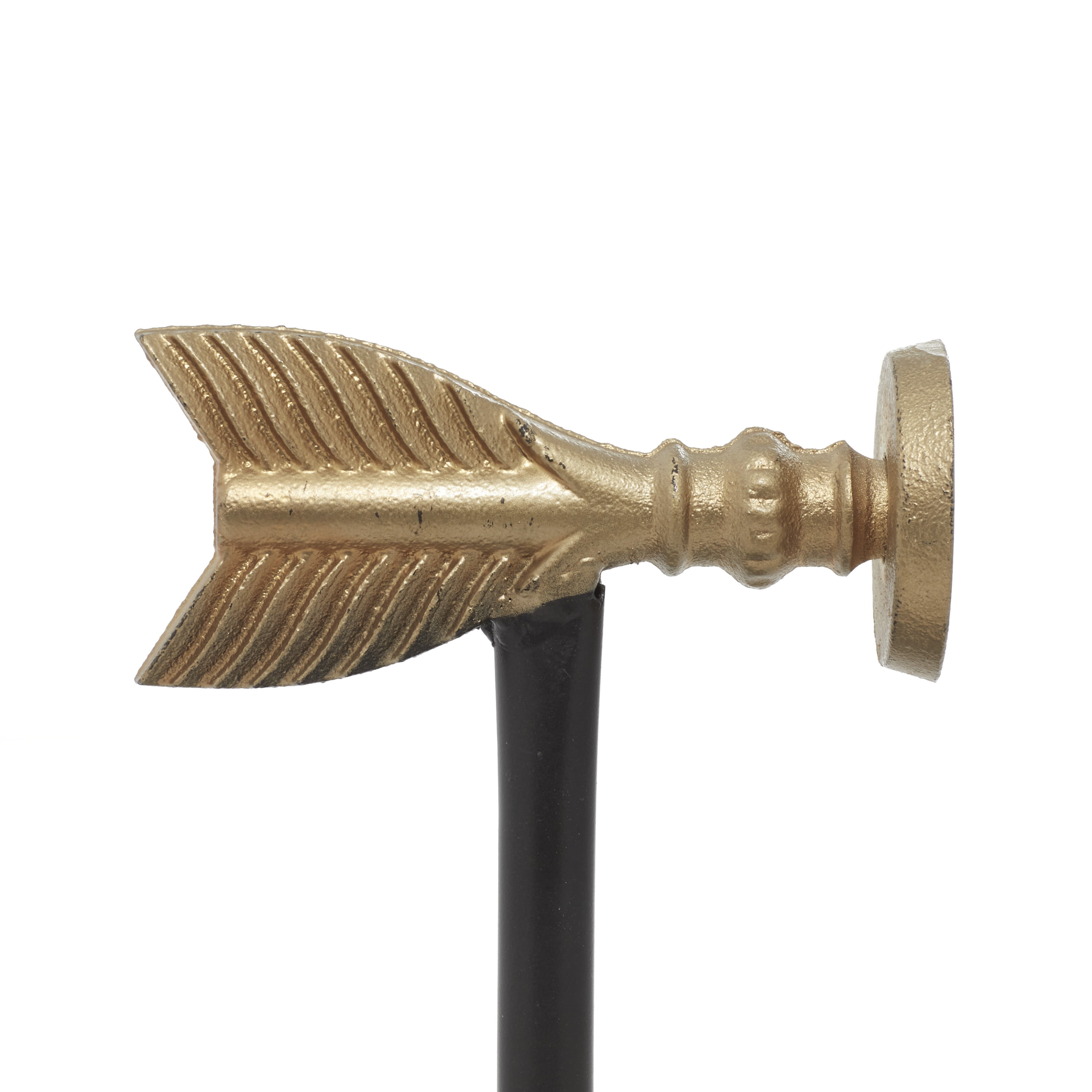 - Features a black-finished iron pole and gold arrow