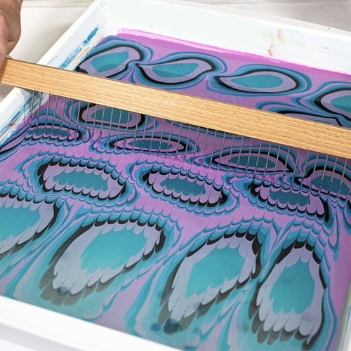 Specifically designed to fit a 12" x 15" tray, these marbling combs from DecoArt with various intervals of "teeth" are used to comb through the paint floating on the surface to create a multitude of beautiful patterns. Available in two tooth sizes – standard comb and rake.