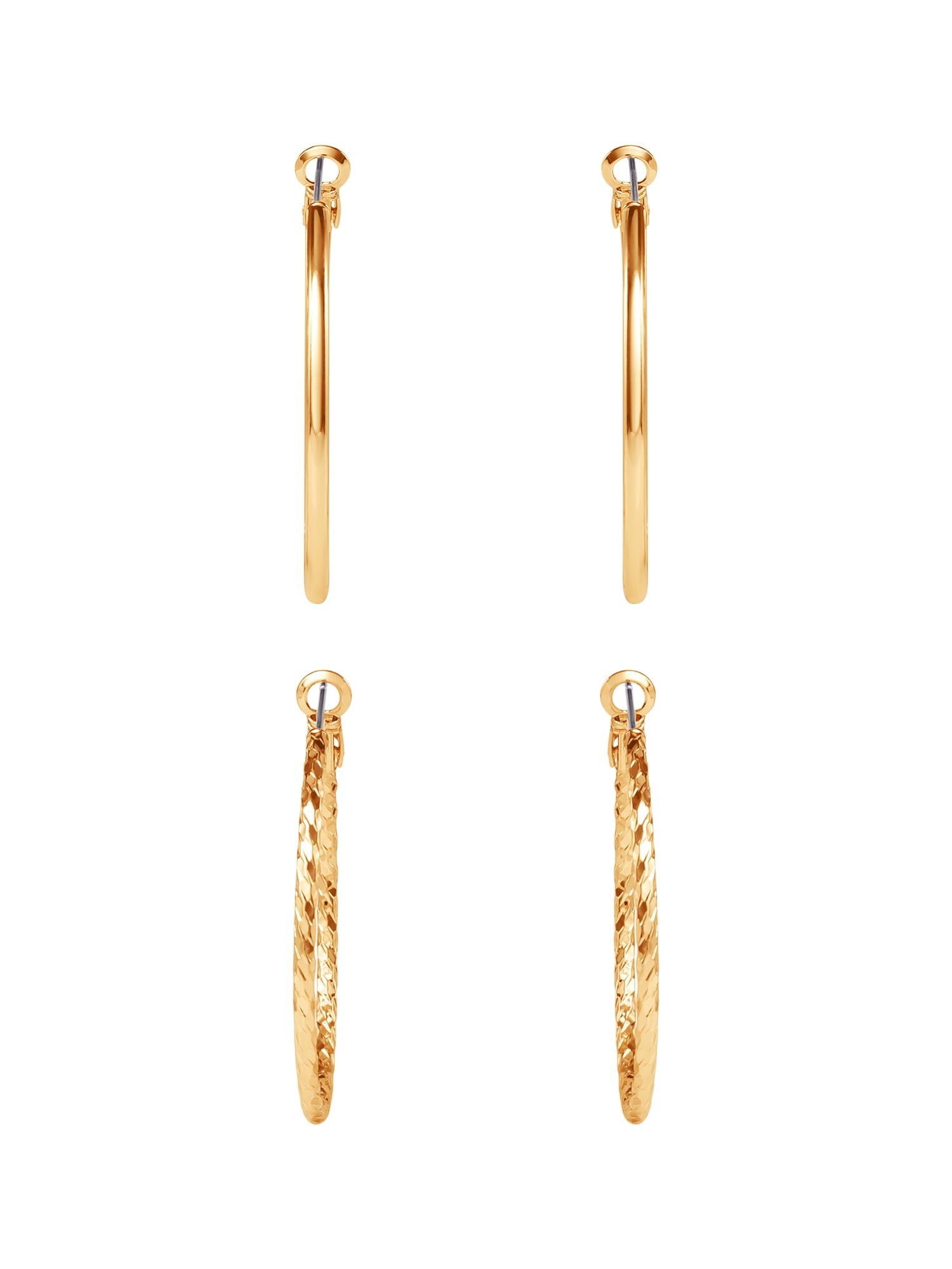 Believe By Brilliance Women’s Yellow Gold Plated Polished and Twisted Hoop Earring Set, 2 Pairs