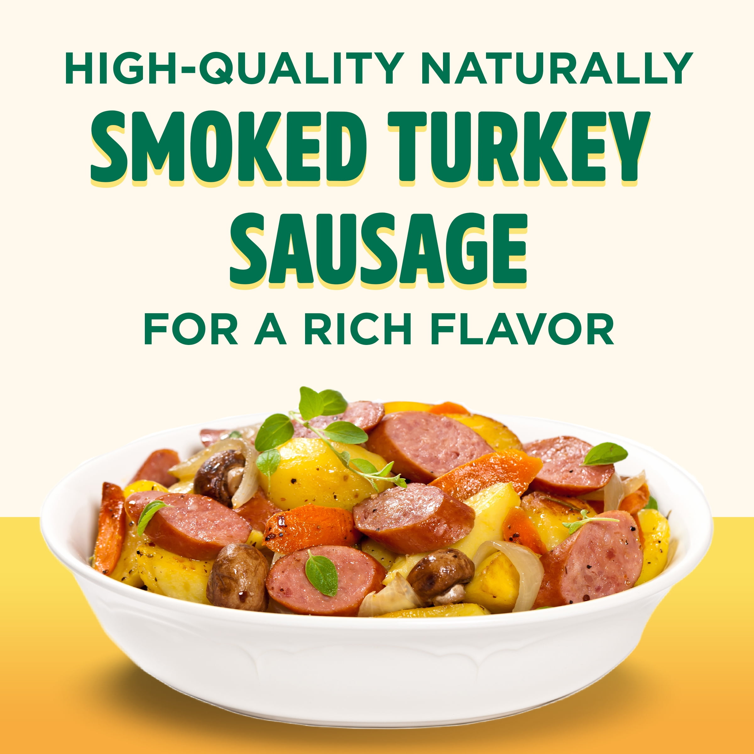 - Made with pork, turkey and beef, this high-quality sausage is naturally hardwood smoked for a rich flavor