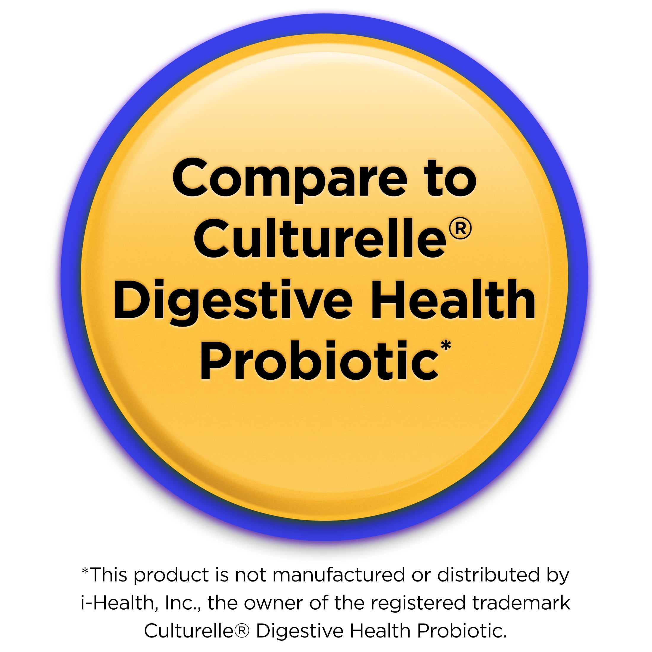 Equate Probiotic Digestive System Support with Lactobacillus Rhamnosus GG helps maintain a healthy balance of good and bad bacteria in your gut. Your body is full of microorganisms and bacteria, many of which are "probiotic," or live in your digestive tract and help your digestive system to break down food and nutrients. You can pick up some of these benevolent bacteria in foods like yogurt and other dairy products, but sometimes you may need just a little bit more of the good to get enough to help the little guys out. That’s why our Equate Probiotic Digestive System Support with Lactobacillus Rhamnosus GG is a dietary supplement formulated with 10 billion live cells per capsule. The capsules are delayed-release capsules, which can help protect the probiotic strains from harsh stomach acid until they reach the small intestine. Just one capsule per day and you’re on your way to a healthier lifestyle. Equate Probiotic Digestive System Support with Lactobacillus Rhamnosus GG is a simple way to get your daily recommended probiotics.