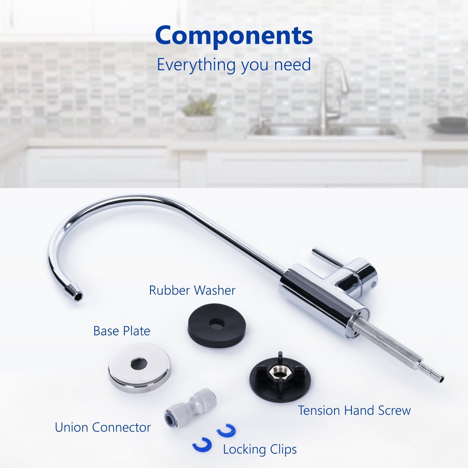 - Expert Design Water Faucet: Elegantly designed, the Modern Chrome Drinking Water Faucet features a high-arch and angled spout to create a smooth stream of water with no splash or dripping. Save Time and Money: Invest in quality accessories for your Express Water Filtration Systems to efficiently and effectively filter your water.