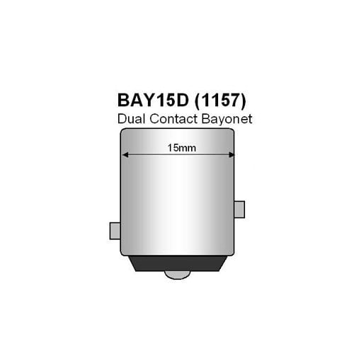 29watt, 12.8volts, S8 Bulb Type, Double Contact Index (BAY15d), Automotive – 2397/BP2 BAY15D is a PREFOCUS double contact bayonet base where one of the pins is higher than the other.