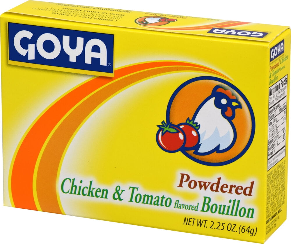 GOYA Powdered Chicken & Tomato Bouillon 2.25 Oz (64g) When your favorite recipe calls for broth or bouillon, reach for Goya’s line of easy-to-use, super-flavorful "cubitos". They come as a powder and are excellent as a base for soups; on chicken, meat and rice dishes, and even to make savory gravies. Great flavor, at your fingertips!