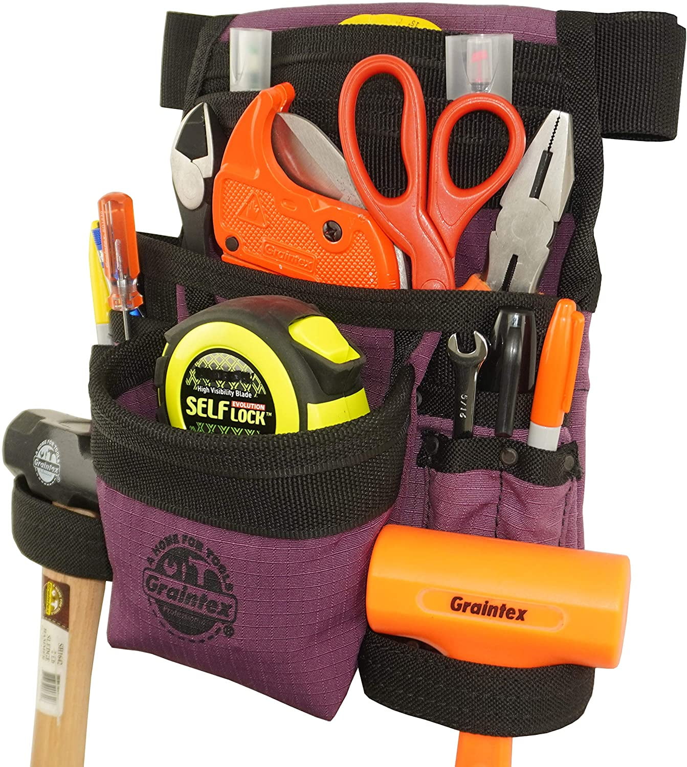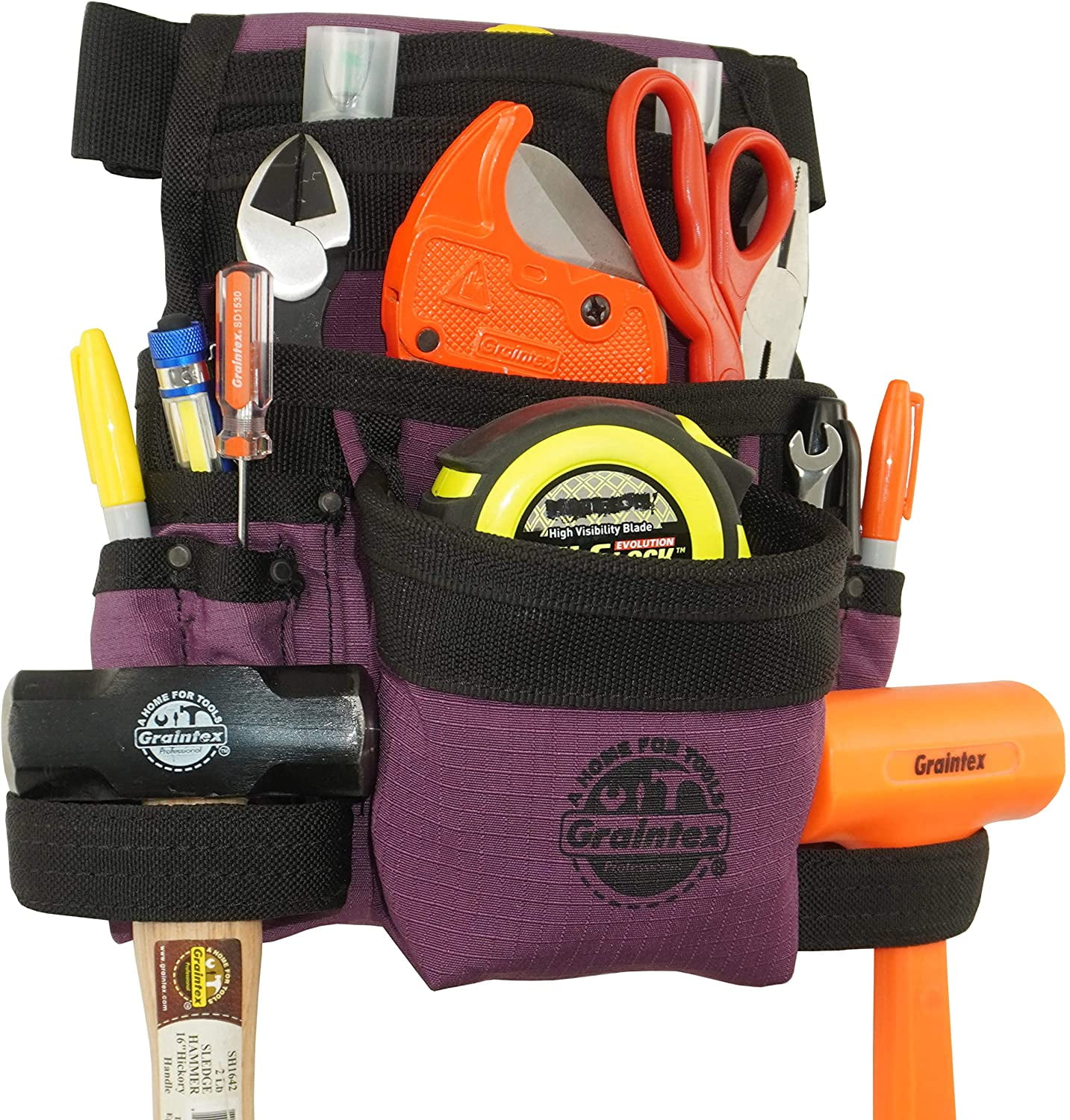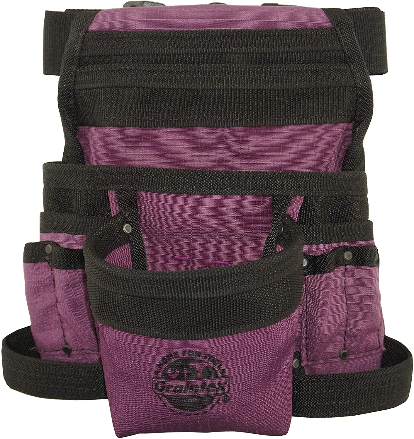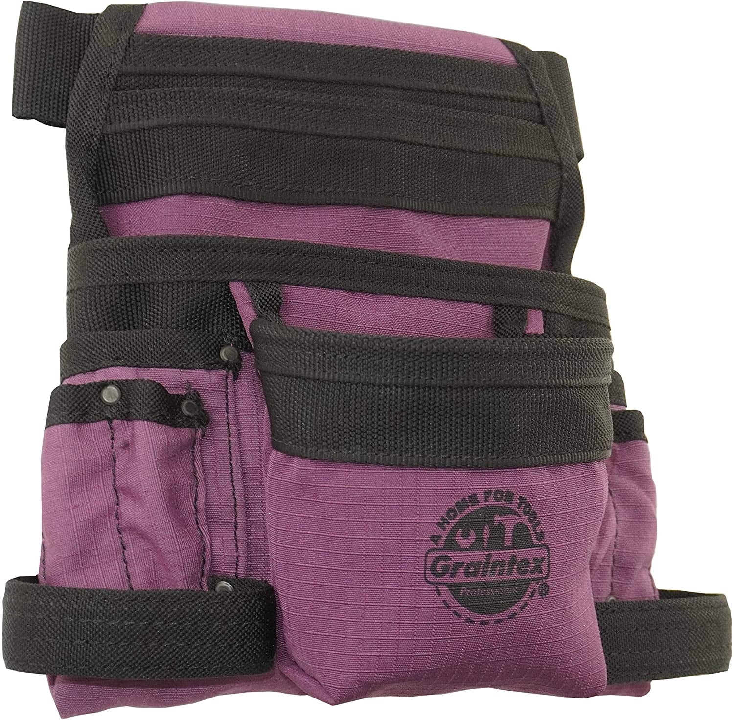 GRAINTEX DISTINCTIVE PRODUCTS are handmade by our highly expert skilled craftsmen using heavy-duty top leveled canvas, giving our customer the satisfaction with our product that can last much longer. The 10 Pocket finisher nail & tool pouch constructed with purple color rip-stop canvas that is extra soft and durable. This exquisite tool pouch consists of ten pockets for extra convenience. The finisher tool pouch has one large pocket that can hold multiple tools. One medium sized pocket that can fit nails, medium-sized tools, two belt level inner pockets, and six small pockets for screwdrivers, pens, pencils, utility knife, and other miniature sets. The pockets are easily accessible, this finisher tool pouch can be used in number of multiple other uses at the workplace or at home. With easily accessible pockets this tool pouch is a handy product for daily use. The finisher tool pouch include two hammer loops fits all standard sized hammers. This finisher tool pouch can be used for multiple projects such as carpentry, housework, gardening, garage projects, electricians, construction, etc. This finisher tool pouch is double stitched and reinforced with steel rivets for extra durability. Since finest heavy-duty purple color canvas has been used to manufacture this tool pouch, it can withstand the wear and tear of handy life, while still rustic and elegant in the process. This product will make an excellent gift for friends, family, and loved ones. At Graintex, we are confident that this product will last a long time. It will make a thoughtful, long lasting gift for anyone and everyone. All Graintex products are handmade using the finest materials for durable and long-lasting usage. All our products are comprised with black plated hardware and heavily double stitched at every stress point with reinforced rivets to provide the durability needed in the field. Every one of our products are uniquely originated with heavy duty materials for a sturdy finish for an easier accessibility, extra longevity, and a finer preference. All our products are designed and manufactured by highly professional experienced skilled craftsmen. Graintex Inc. is a family-owned company founded in 2005 and has a manufacturing unit in India. Graintex products are professionally designed for use by professionals worldwide?