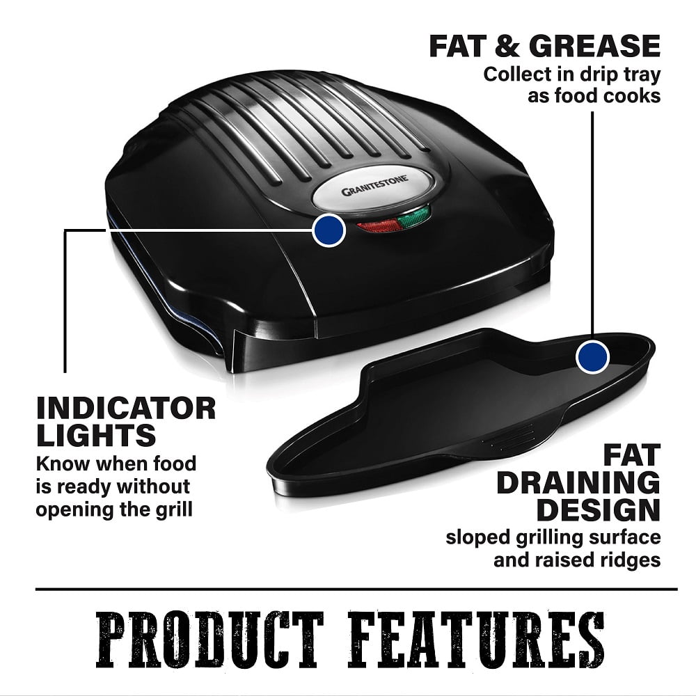 - NONSTICK INDOOR GRILL –Now you can enjoy delicious perfectly grilled burgers, steaks, paninis and chicken in minutes with the simple to use, and easier to clean Granitestone Indoor Grill and Panini Press!
