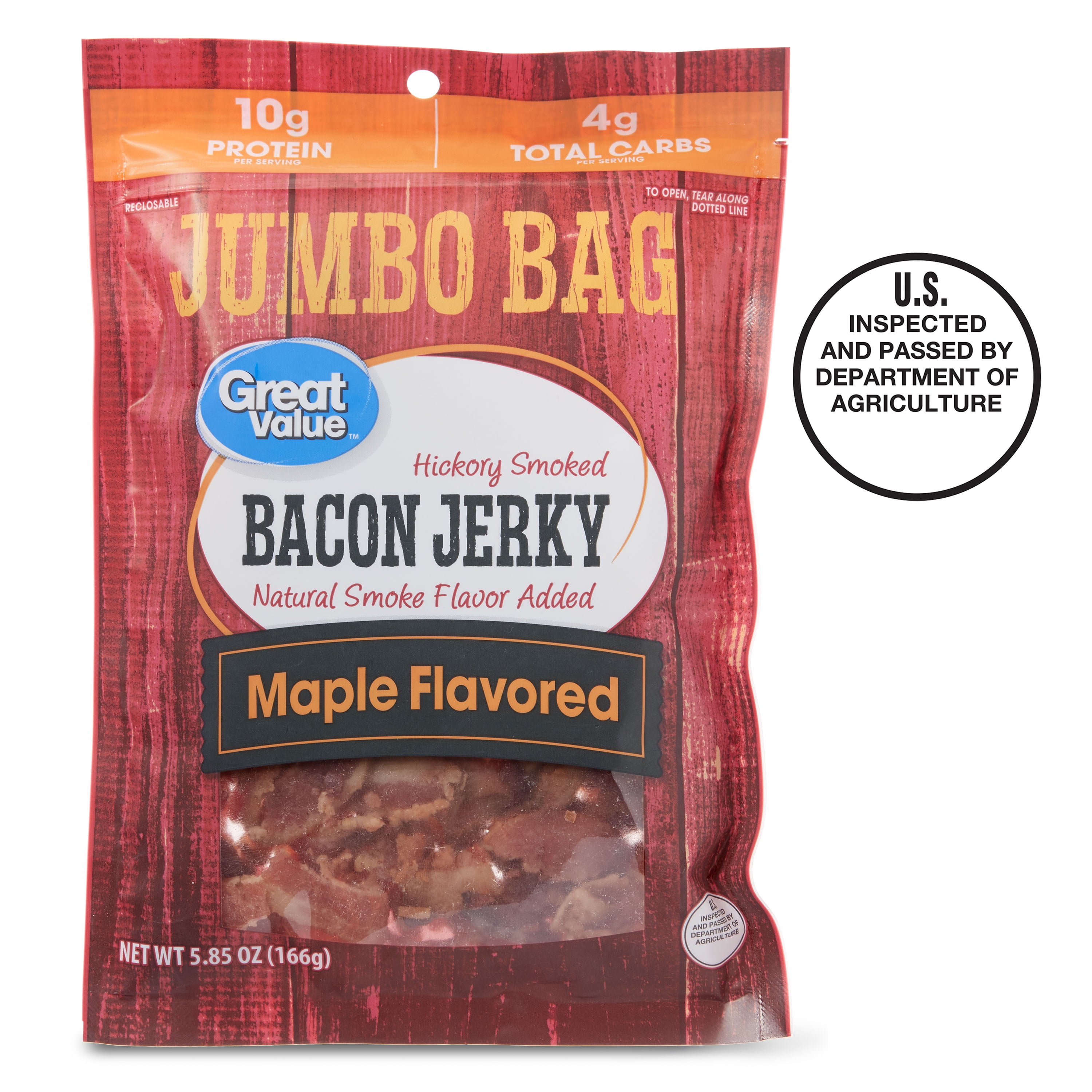 Great Value Hickory Smoked Maple Flavored Bacon Jerky Jumbo Bag, 5.85 oz