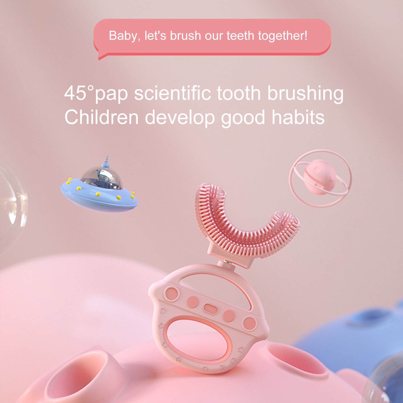 - Featuring with the ergonomic and scientific design, which it can wrap the baby’s teeth in all directions. With the fine bristles can effectively remove food residues without scratching kid’s mouth cavity. The whole body is waterproof, so you can brush your teeth while taking a bath.