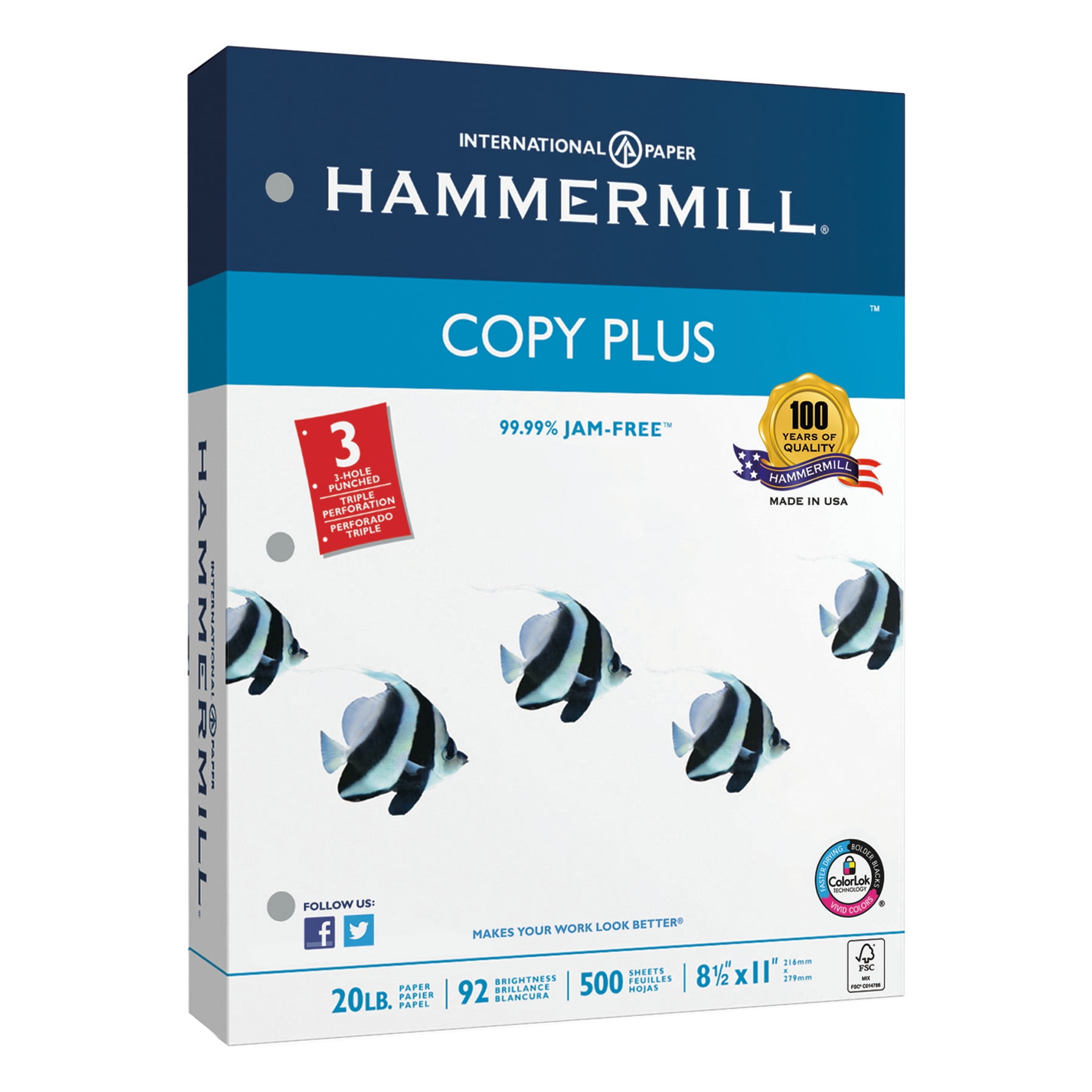 This 3-Hole punched multipurpose paper is made of high-quality 20 lb. paper with a 92 brightness yet paper that offers dependable performance on all office machines. It contains Color Lok Technology that makes blacks up to 60 percent bolder, colors up to 30 percent more vivid and ink that dries up to three times faster.