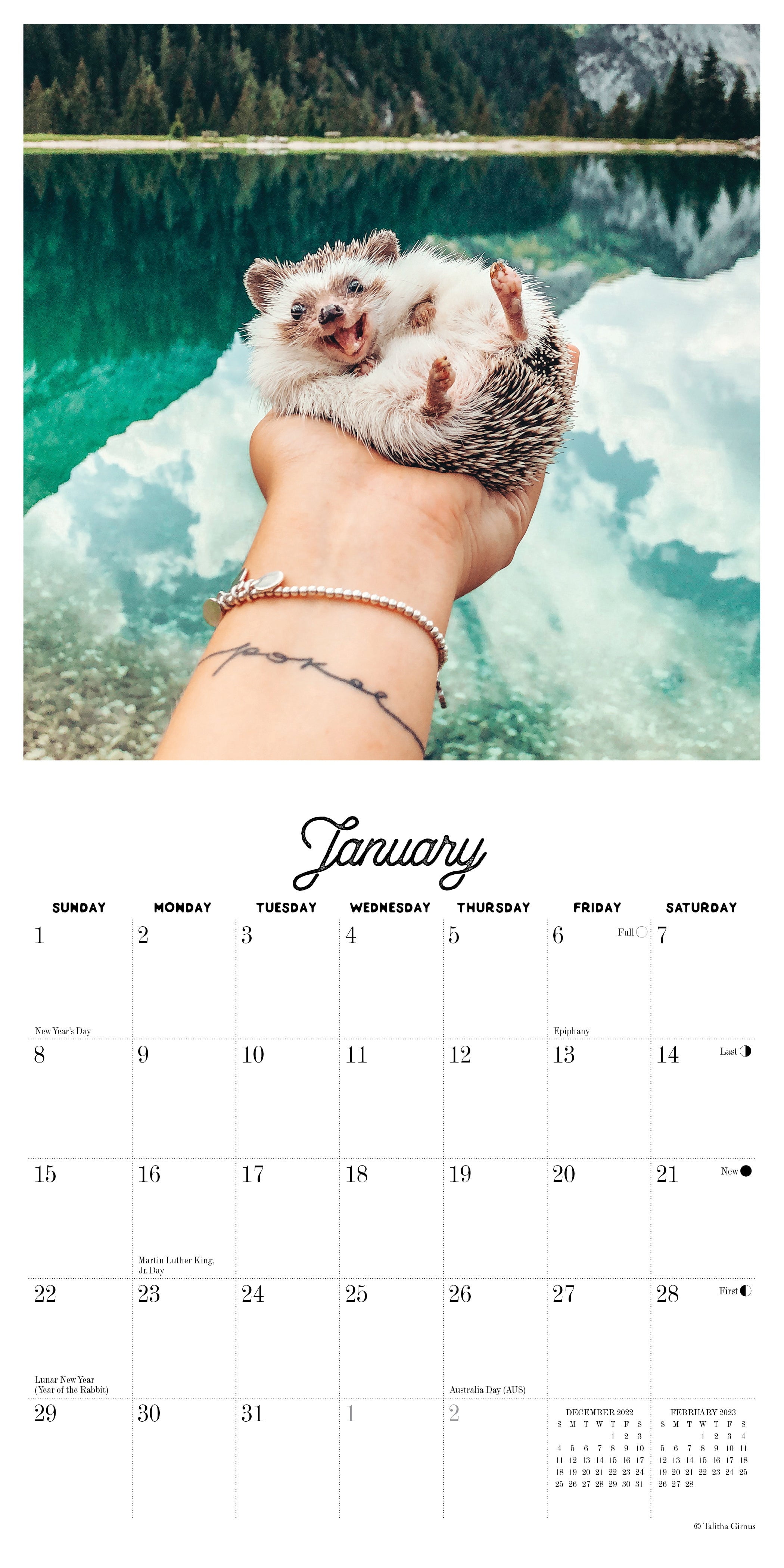 It all started with a hedgehog named Mr. Pokee who taught us how to be happy and smile. Between all the serious things happening in the world and the pressures of everyday life, Herbee the Hedgehog is here to give you a reason to be happy and smile. Over 1.7 million followers from all over the world have been inspired by his message to never lose faith and always follow your heart. Printed with soy-based inks on FSC certified paper, this 7”x 7” wall calendar features large monthly grids that offer ample room for jotting notes, along with six bonus months of July through December of 2022. Also includes moon phases (CST), standard U.S., and international holidays.