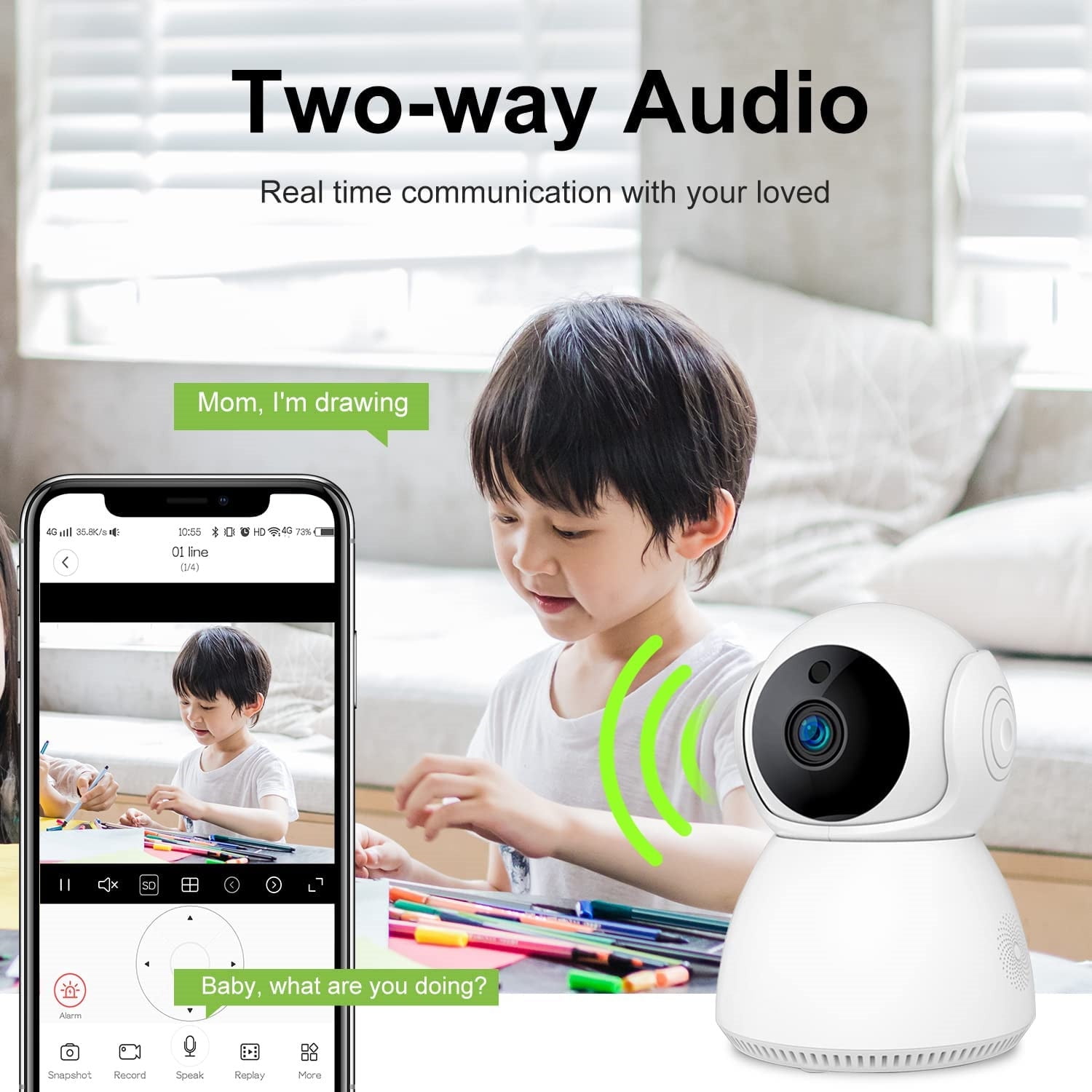 Camera Indoor Security 360 Degree Pan/Tilt WiFi Cameras Plug-in Home Camera, Baby Pet Monitor Camera with Night Vision, 2-Way Audio