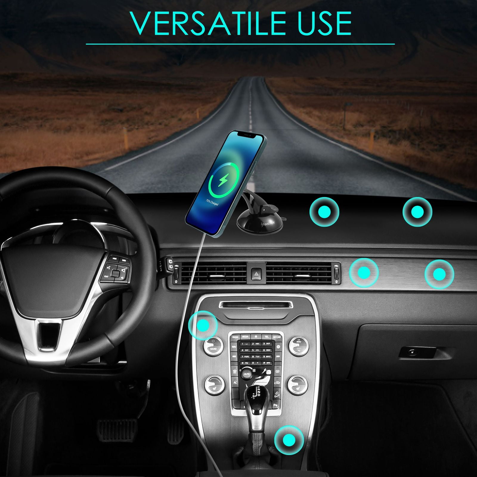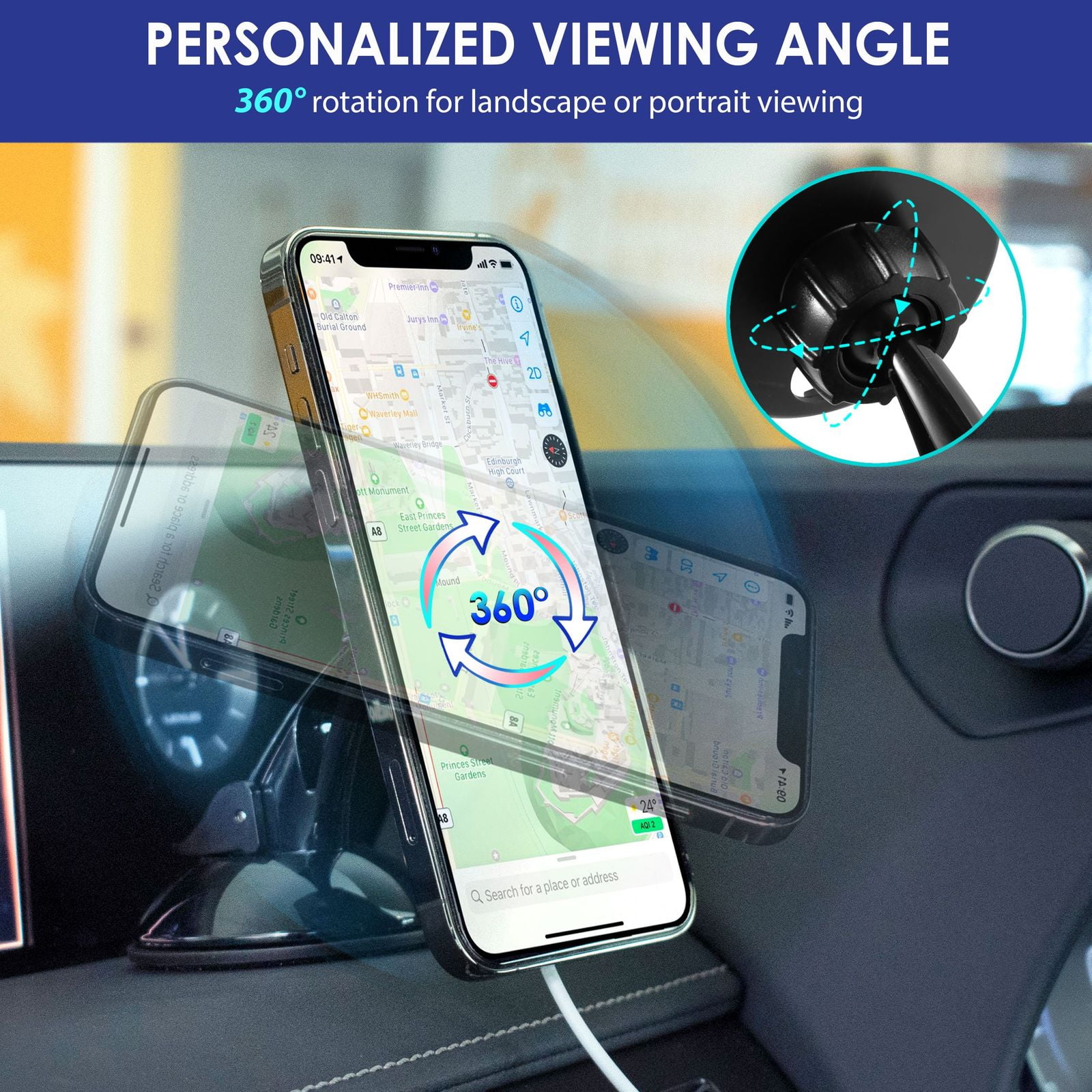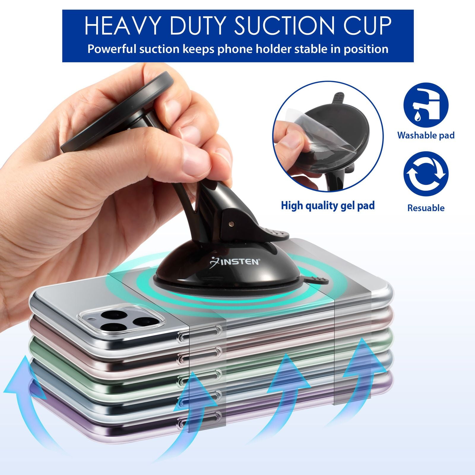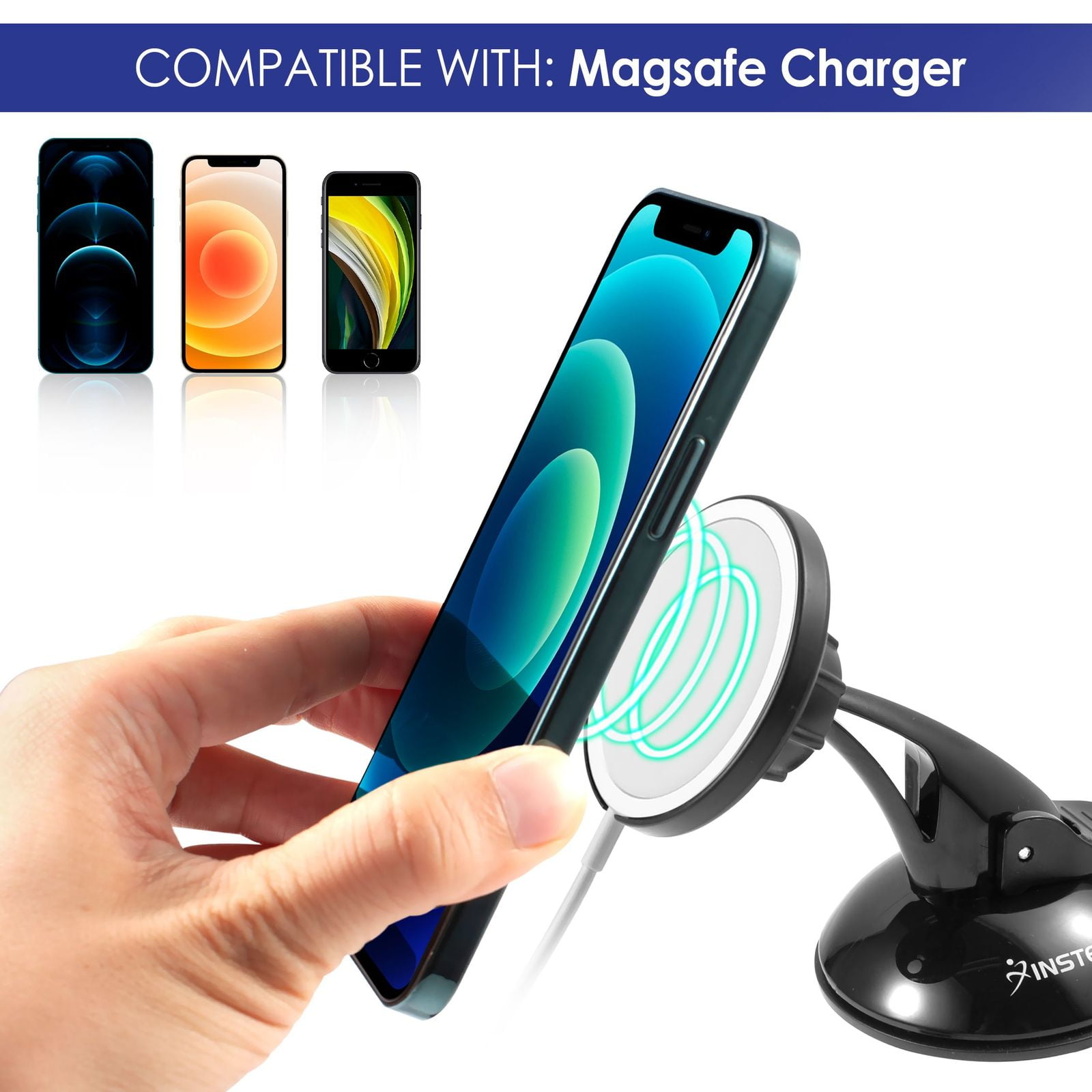 Insten Car Phone Holder Compatible with Magsafe Charger Wireless Charging Pad, Dashboard Windshield Mount Adjustable, Strong Suction Cup