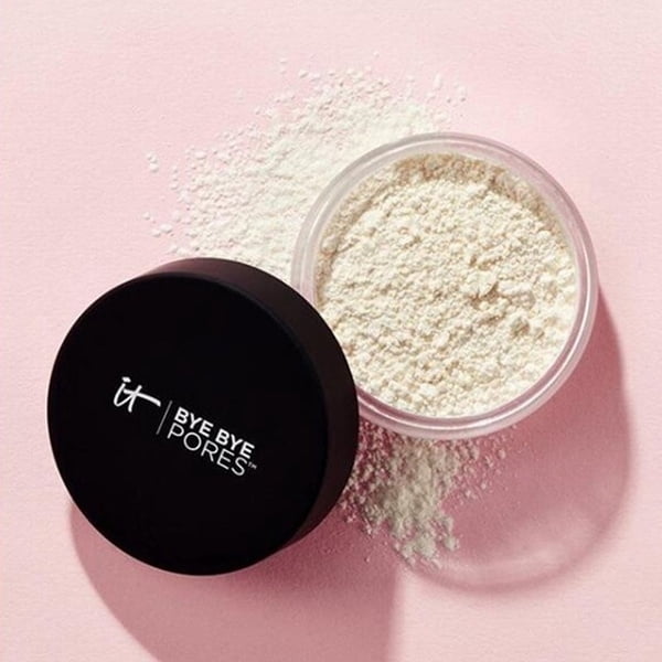 BYE BYE PORES – Instantly erase the appearance of imperfections with Bye Bye Pores translucent powder. Developed with plastic surgeons, this anti-aging, skin-perfecting powder acts like airbrushing in a jar! BYE BYE PORES – Instantly erase the appearance of imperfections with Bye Bye Pores translucent powder. Developed with plastic surgeons, this anti-aging, skin-perfecting powder acts like airbrushing in a jar! SKIN-LOVING INGREDIENTS – This loose setting powder utilizes real silk to make your pores disappear from view, hydrolyzed collagen to smooth away the look of wrinkles, plus antioxidants & peptides for a shine-free, airbrushed finish. UNIVERSAL SHADE – Our translucent powder goes on completely clear and works on all skin tones. Can be worn over makeup or on bare skin to minimize the appearance of large pores and create an airbrushed finish. BEAUTY TIP – Using your IT Cosmetics Heavenly Luxe Dual Airbrush Concealer Brush #2, blend Bye Bye Under Eye concealer around your eyes, nose and lips. Then, use Bye Bye Pores to set for a pore-blurring, shine-free finish that lasts! HOW TO APPLY – Sweep a small amount of loose translucent powder onto skin using your favorite IT Cosmetics makeup brush.