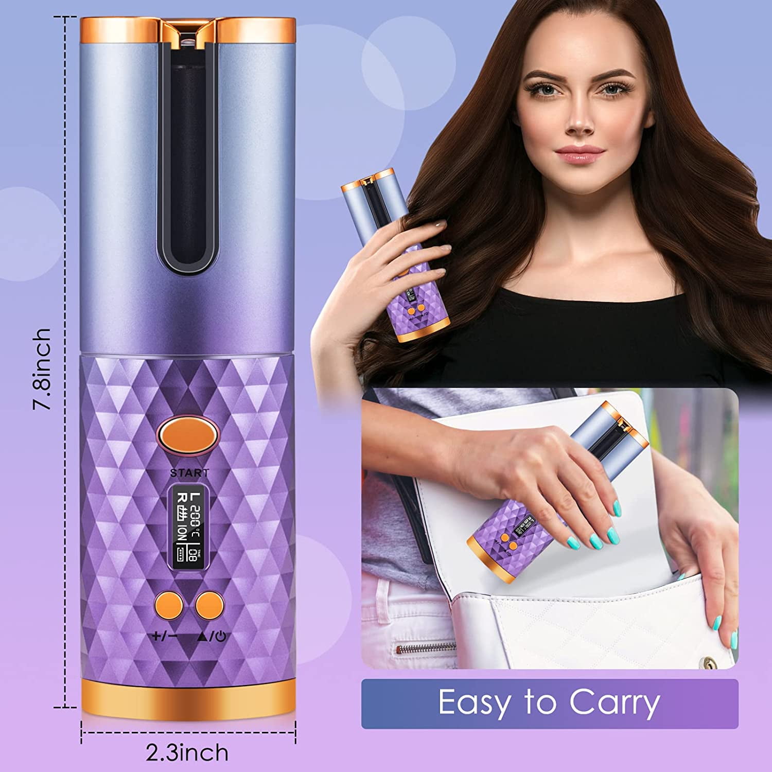 - 1.Automatic Curling Iron:This latest cordless curler can easily create charming curls with the press of a button! Automatically rotating the barrel can easily create curls in seconds. No skill required! You can create salon curls and waves at home