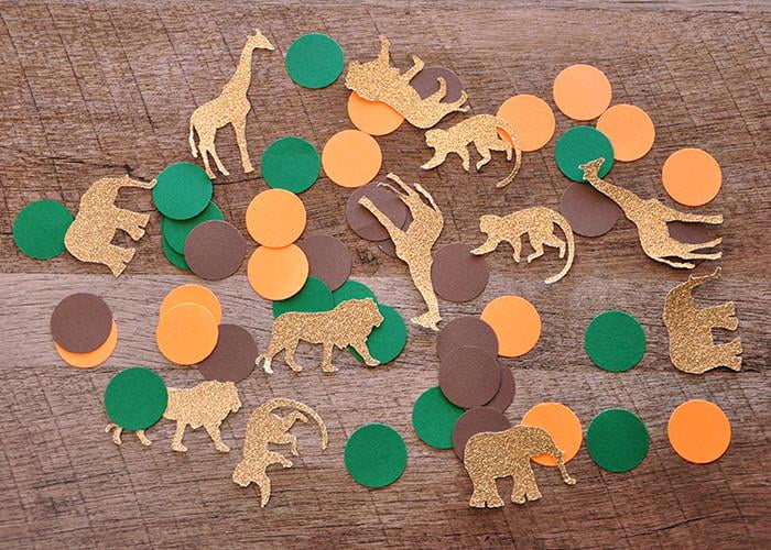 Confetti Momma’s "Jungle Confetti mix" can be a great addition to your jungle or safari themed baby shower or birthday party. Stuff your party invitations, use it to decorate tables, embellish presents, throw it in the air, or use it as part of a shower game.