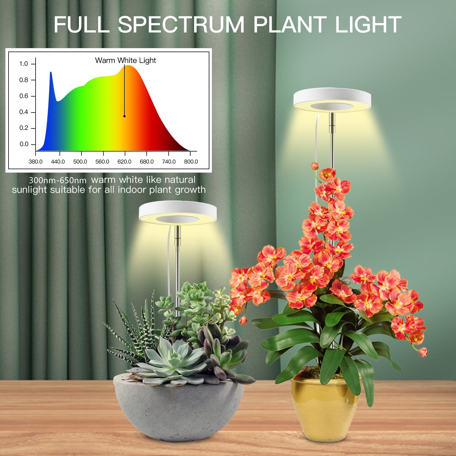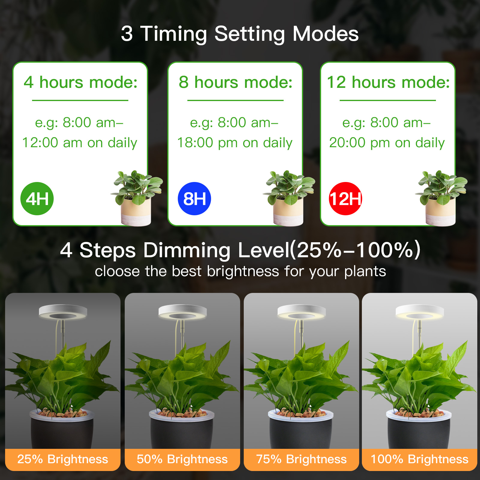 - Height adjustable small grow lamp with auto on/off timer, 4 dimming levels potted plant lights.