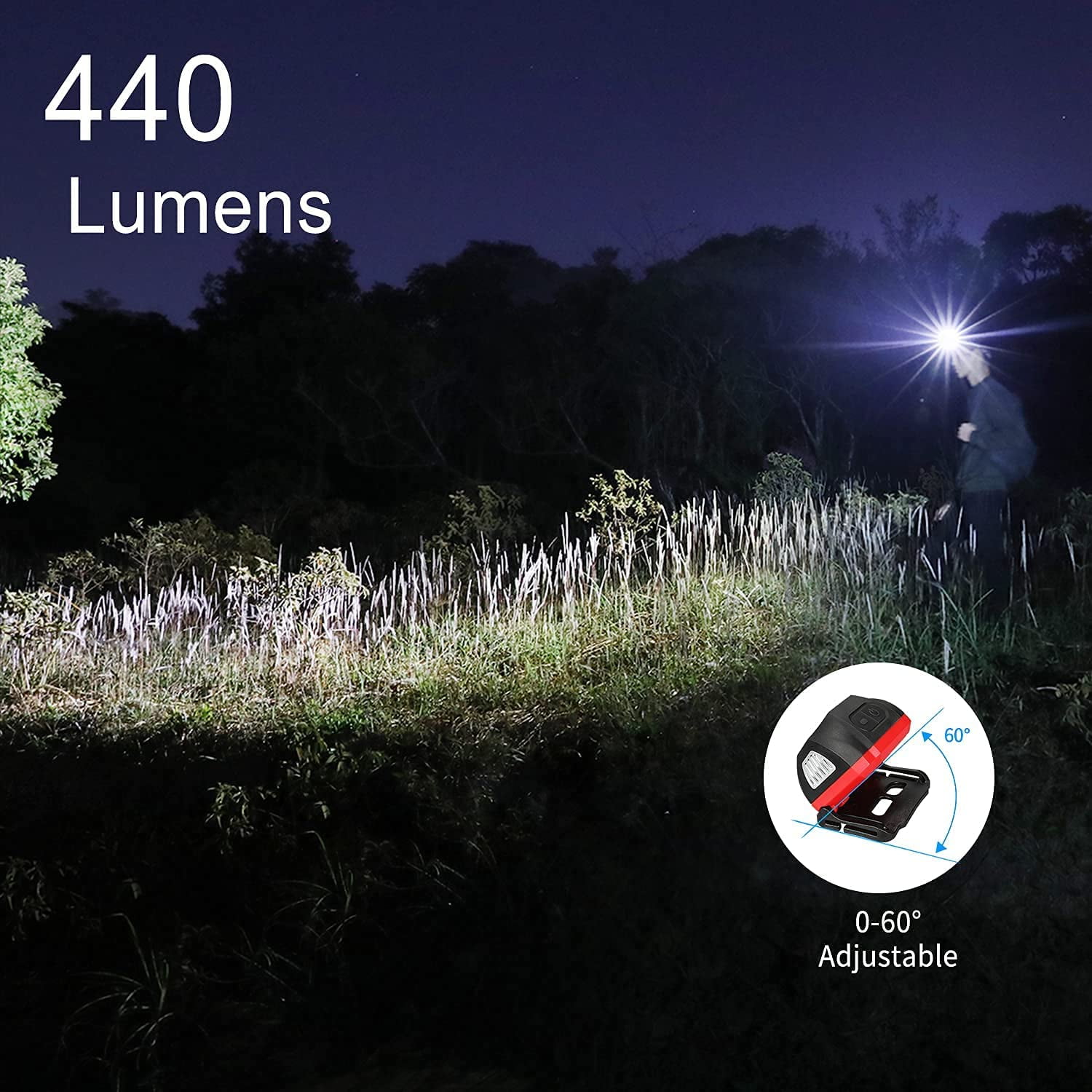 - Bright LED Headlamp: Equipped with a CREE XPG-3 LED, max output can reach 440 lumens, beam distance 100 meters. Combination of spotlight and floodlight, 60 Degree Adjustable beam,give you the best night view.