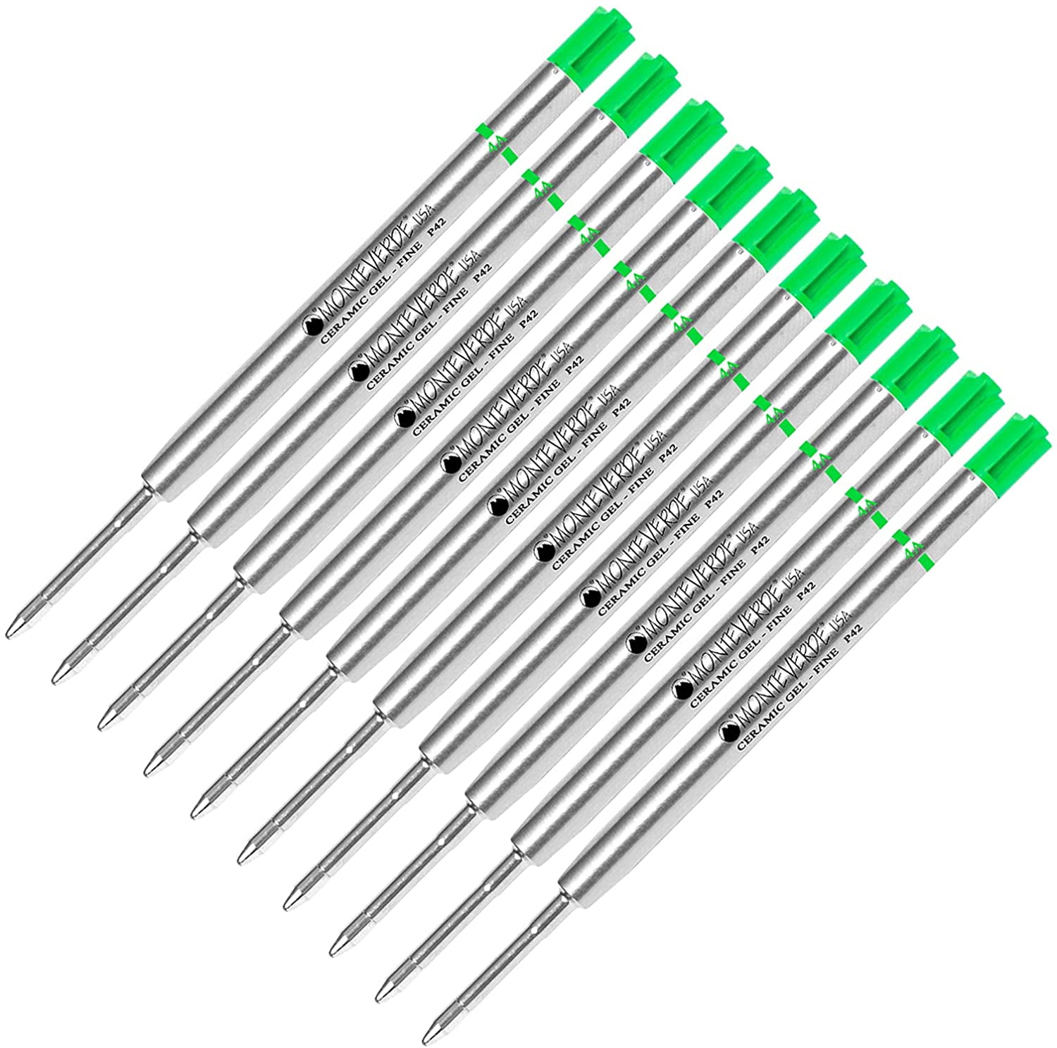 - 10 Pack – Monteverde® Capless Ceramic Gel™ P42 Ink Refill Compatible with most Parker® Style Ballpoint Pens – Green (Fine Tip 0.6mm)