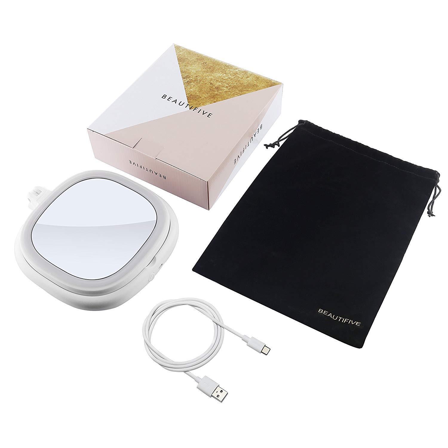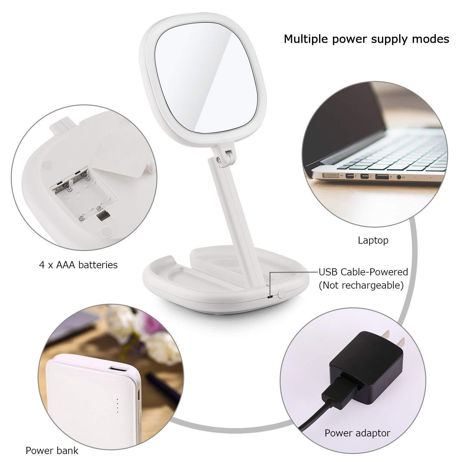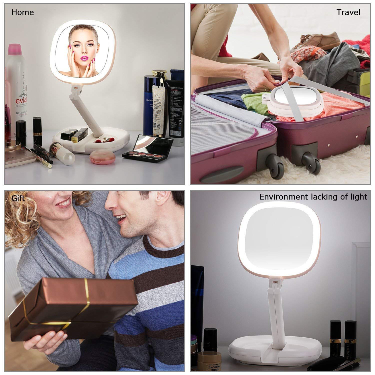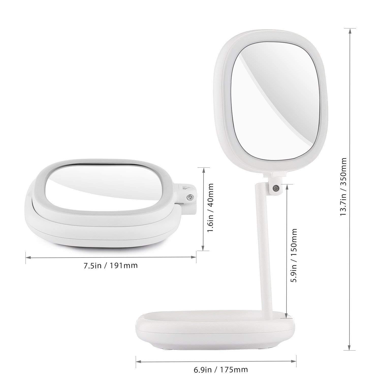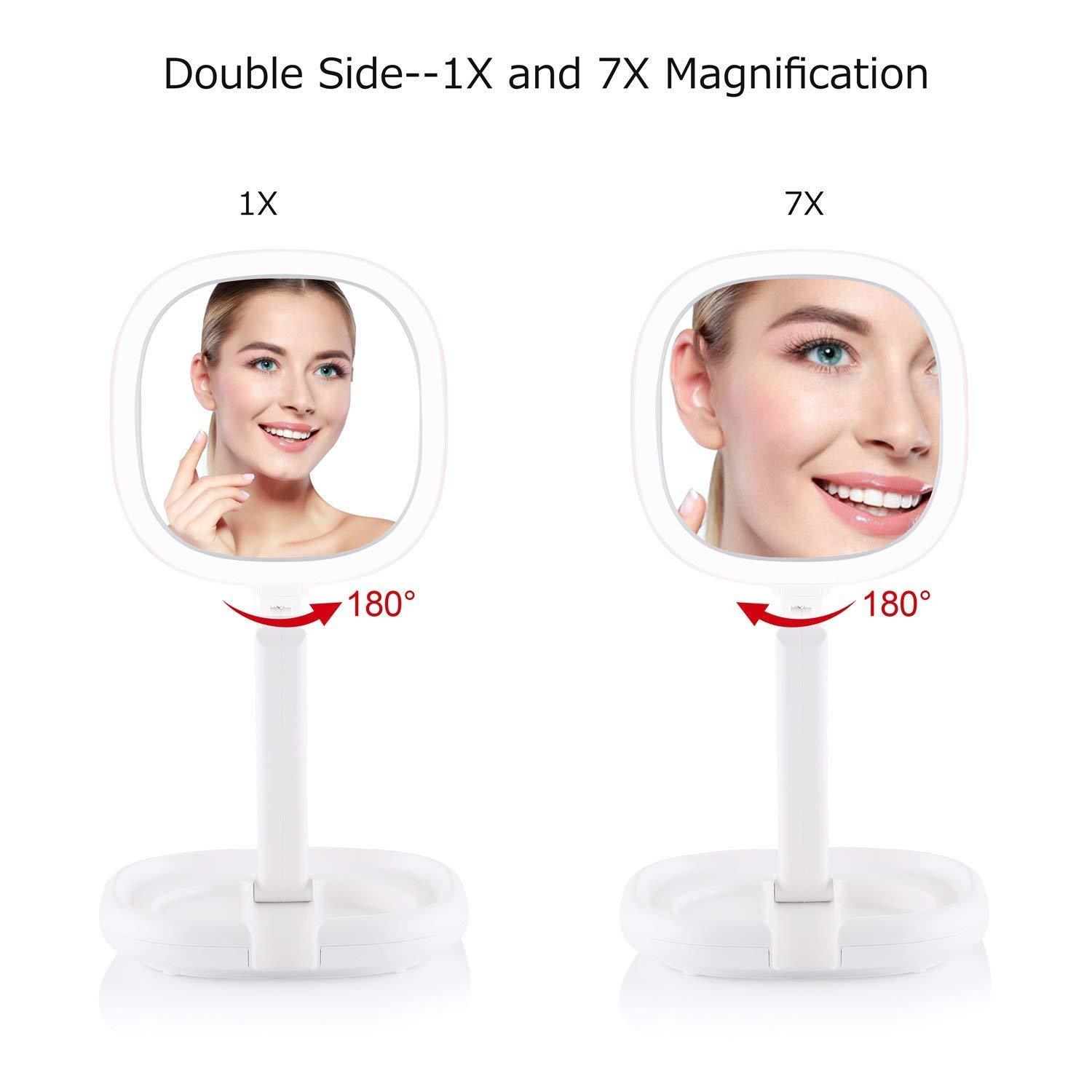 Lighted Makeup Mirror, Beautifive Double Sided Magnifying Mirror, Vanity Mirror with Lights, Smart Design with Brightness&Angle&Height Adjustability, Folding Compact Mirror, LED Mi