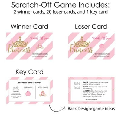 Little Princess Crown – Pink and Gold Princess Baby Shower or Birthday Party Game Scratch Off Cards – 22 Count
