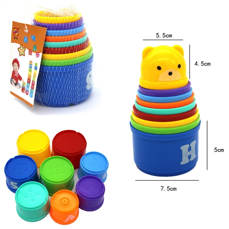 - With Number and ABC Characters–Comes 9 pieces in a set round shape, Stylish design with different colors matched with different number and aleph bet A B C, help your baby learning the count whilehaving fun in stacking cups.