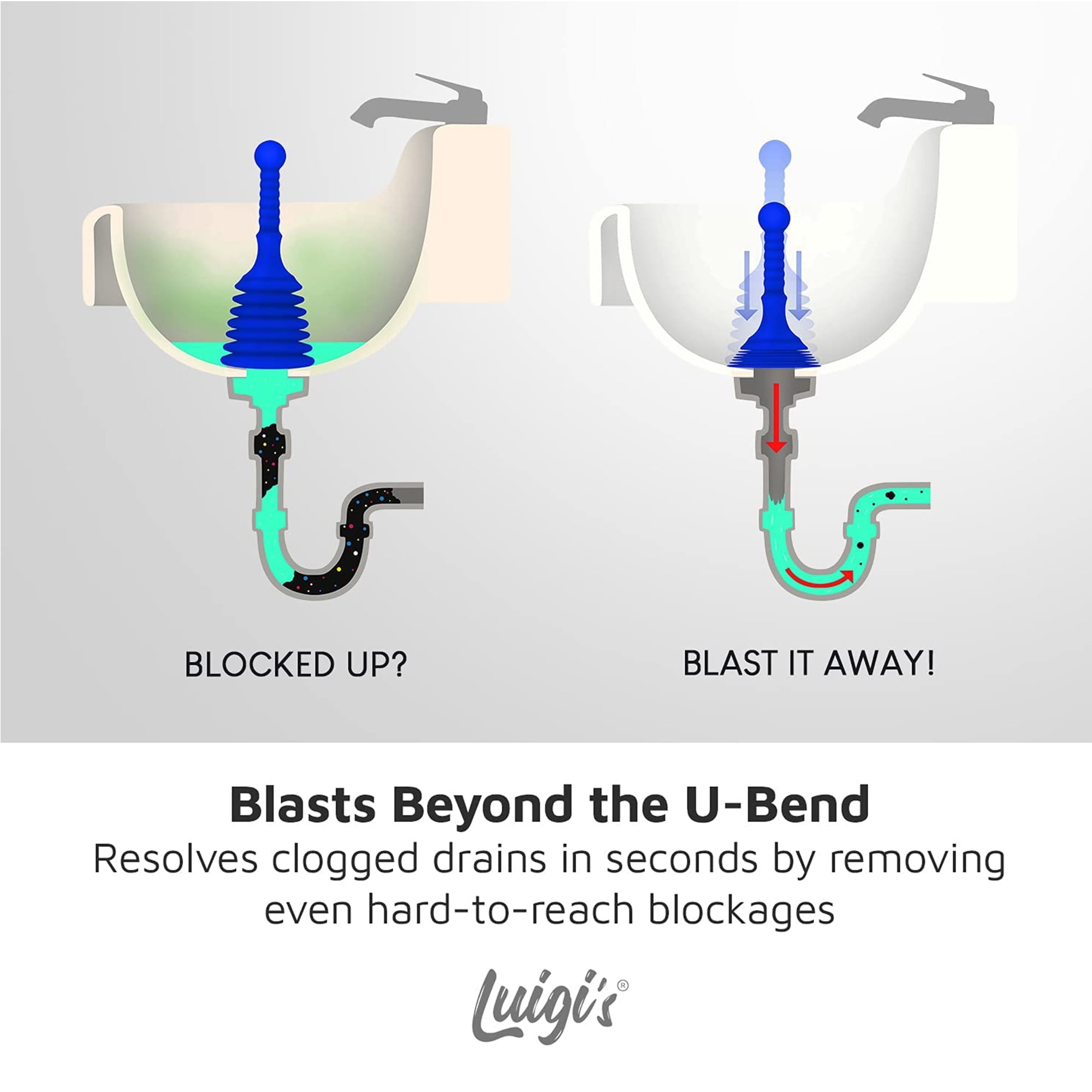 - Pumps up to 8x greater air volume than the traditional clogged drain plunger