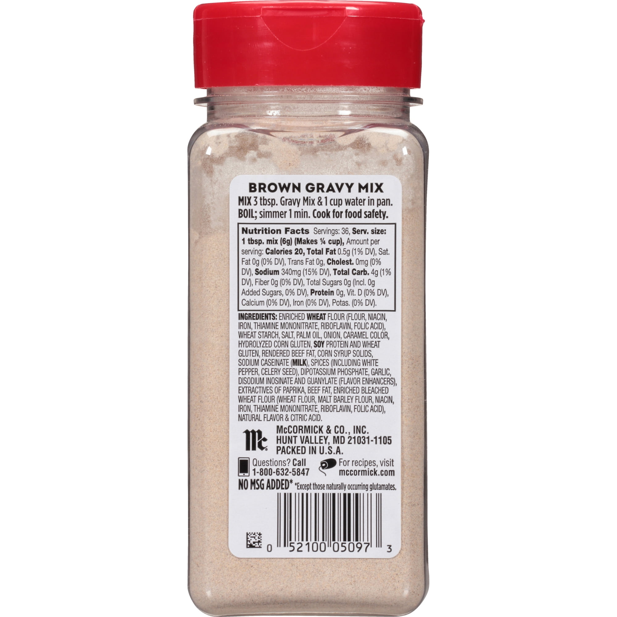 - McCormick Brown Gravy Mix has no artificial flavors and no MSG added*