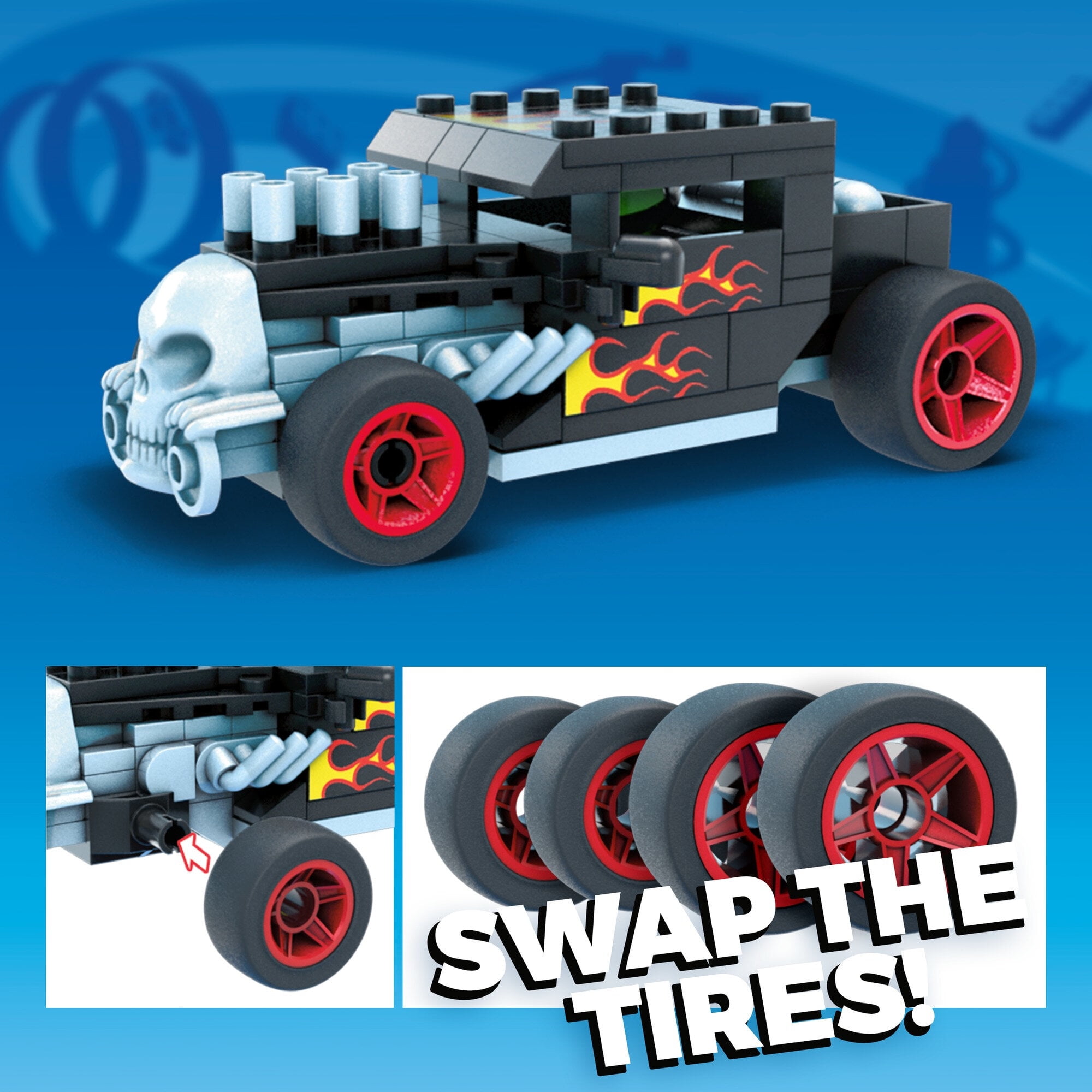 Get ready for huge smash-and-crash action with the buildable Hot Wheels Bone Shaker monster truck construction set, based on the classic hot rod model. Featuring authentic Hot Wheels details, this vehicle is equipped with giant wheels, the iconic skull hood ornament as well as a chrome-colored chassis and exposed engine. Sit the included micro action figure in the driver’s seat and combine with other Mega Construx Hot Wheels building sets to create your own custom monster trucks. Ideal for Wonder Builders, ages 5 and up