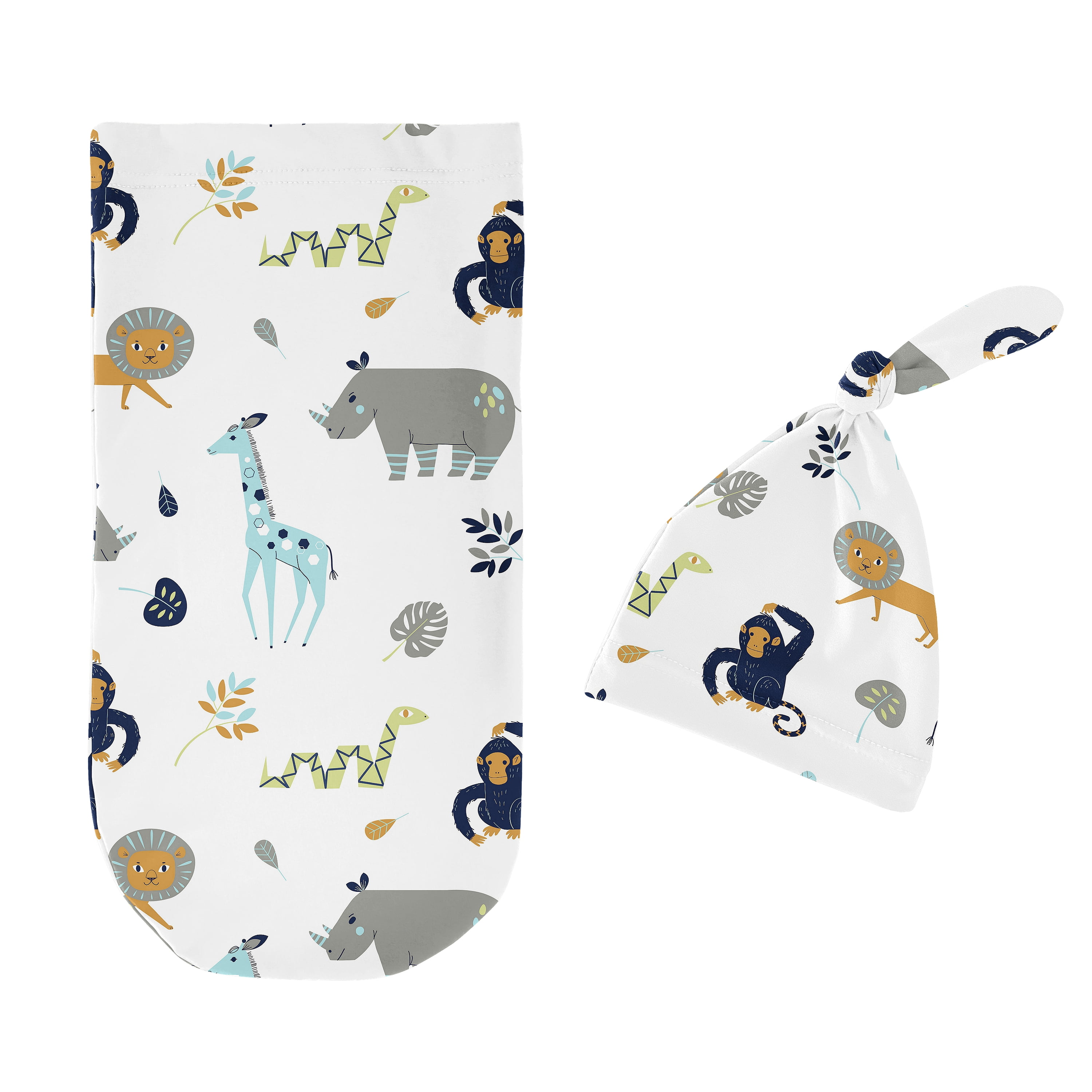 Sweet Jojo Designs cocoon and beanie sets are designed to gently hug your baby for a snug comfort. These sleep sacks let your infant’s arms, hips and legs feel wrapped up in a stylish pouch, similar to the security they feel bundled up in a swaddle or wearable blanket. They are made from soft and stretchy jersey knit fabric, making them the perfect baby shower gift for expectant parents. Set includes a stretchy pouch and adjustable top knot beanie hat that makes them the perfect going home from the hospital newborn outfit. Sweet Jojo Designs Safari Animals Baby Boy Cocoon and Beanie Hat Set Jersey Stretch Knit Sleeping Bag for Infant Newborn Nursery Sleep Wrap Sack – Turquoise Navy Blue Mod Jungle Lion Monkey Giraffe