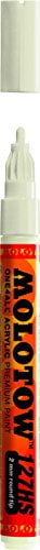 Molotow One4All Acrylic Markers are highly opaque and permanent, with a semi-gloss finish. They�re also quick-drying and non-toxic. The refillable markers feature Molotow’s patented Flowmaster pump-valve that ensures a continuous ink flow for quick application. – Molotow One4All Acrylic Marker – 2 mm, Nature WhiteCHARTPAK, INC. MW127235 MOLOTOW ACRYLIC PAINT MARKER 2MM NATURE WHITE