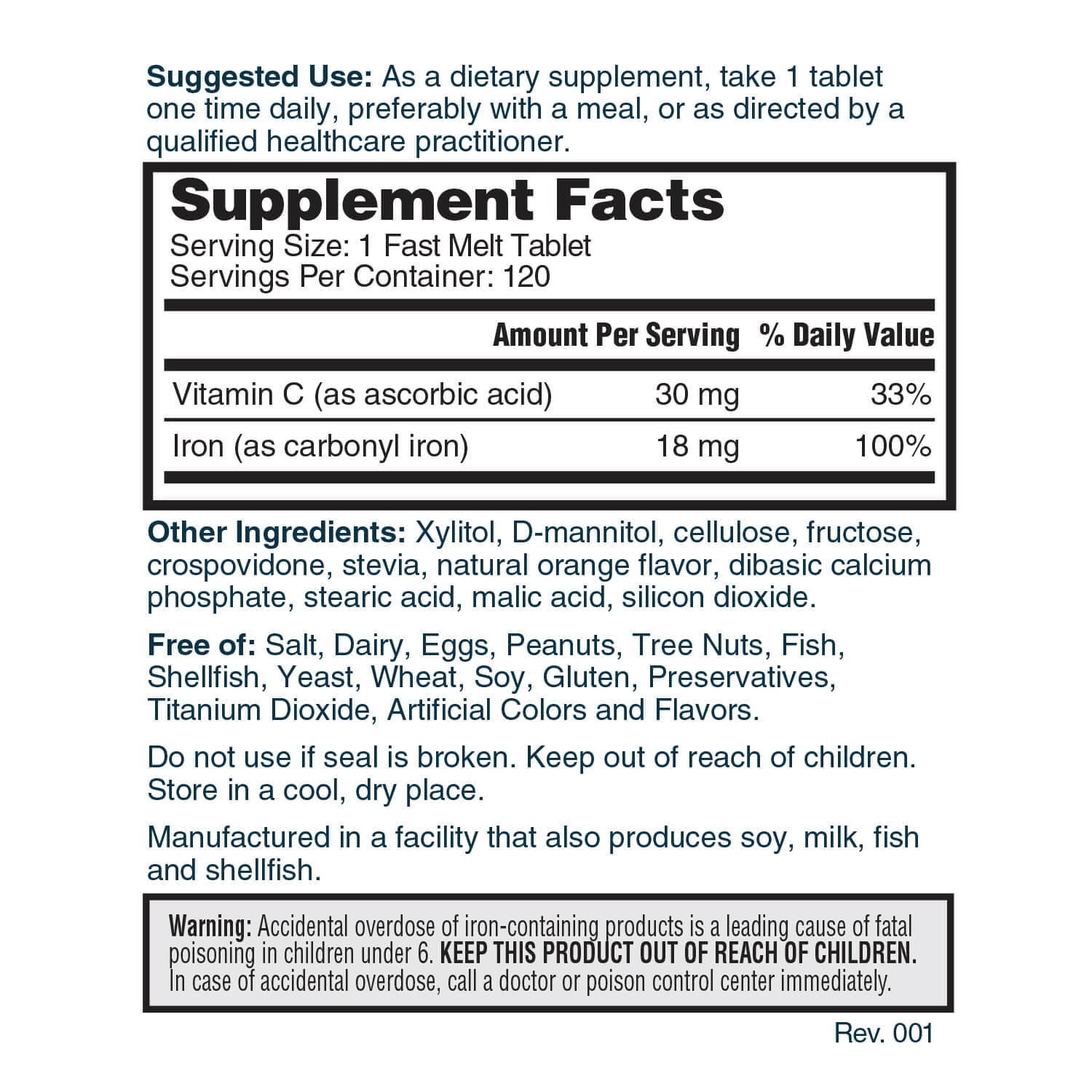 - One tablet contains 100% of the daily value for iron