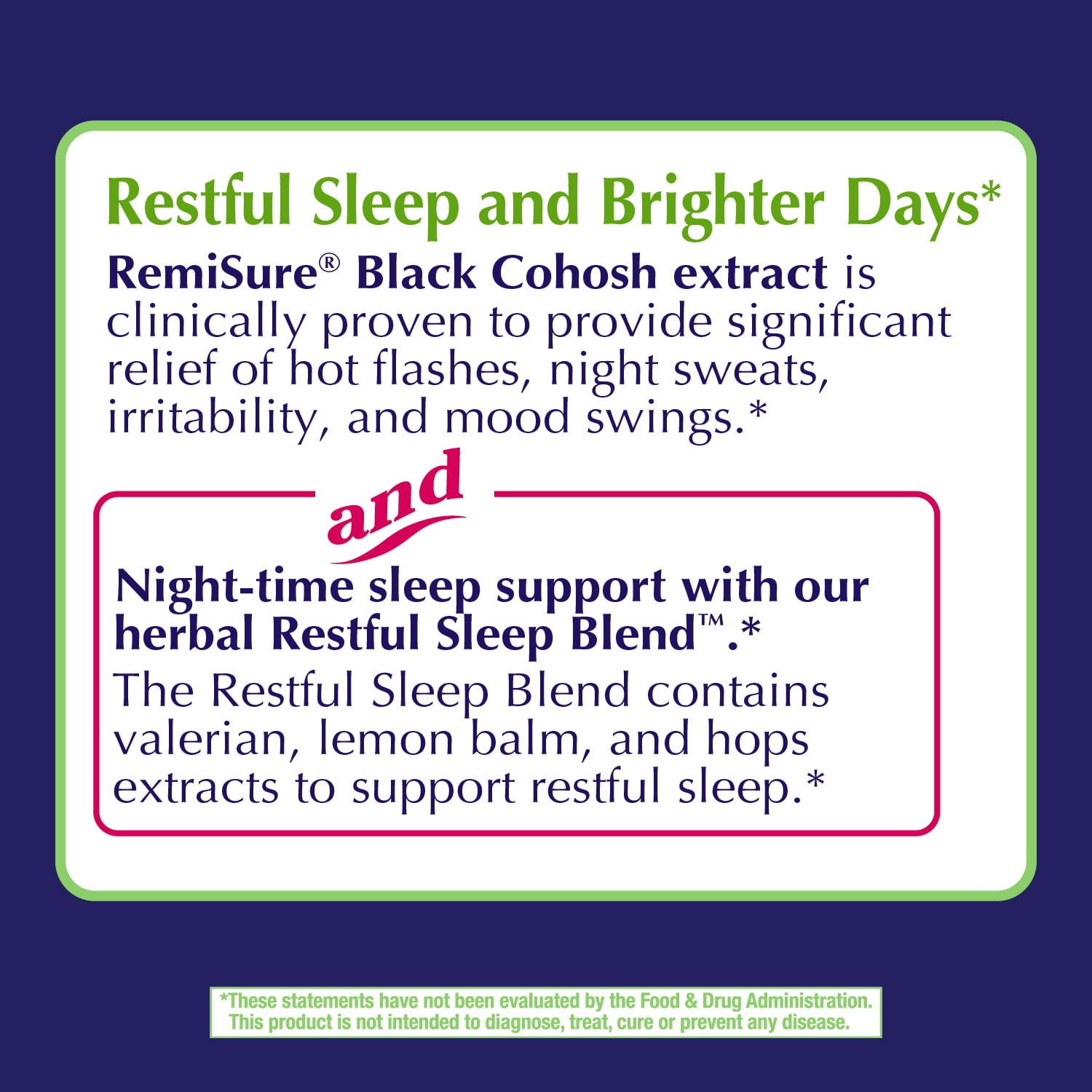 - Herbal menopause relief blend with RemiSure black cohosh extract, clinically proven to provide significant relief of hot flashes, night sweats, and mood swings.*