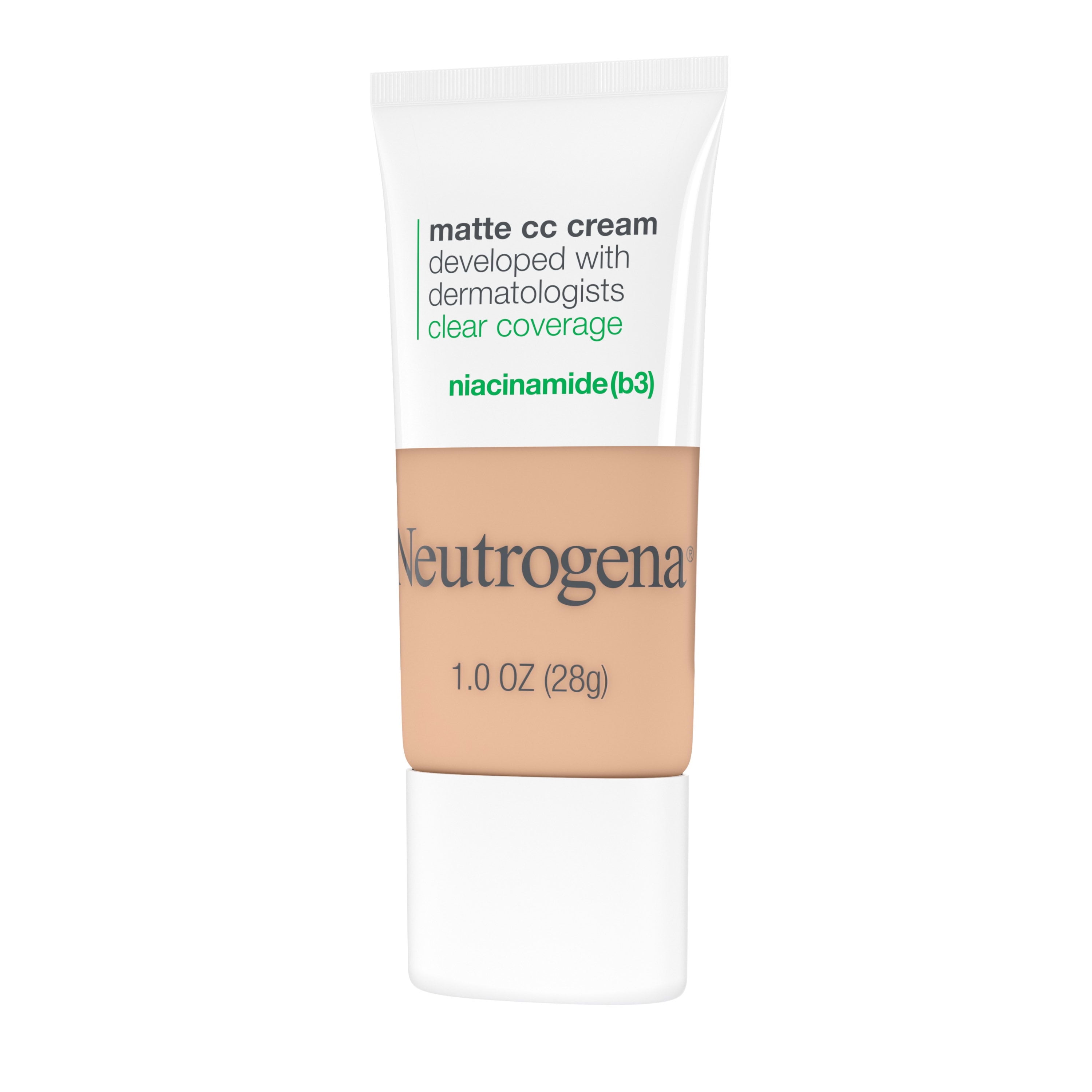 Get a flawless looking complexion with Neutrogena Clear Coverage Flawless Matte CC Cream. Available in 34 natural-looking shades, this color correcting cream makeup from a dermatologist recommended brand provides full, matte coverage, designed to mask imperfections and even skin tone. The mattifying foundation was developed with dermatologist for acne prone skin and is formulated with niacinamide (b3) and is hypoallergenic, free of oil, fragrance, parabens, and phthalates. This breathable formula feels comfortable on skin, blurs the look of discoloration and redness, and leaves skin feeling soft and smooth.