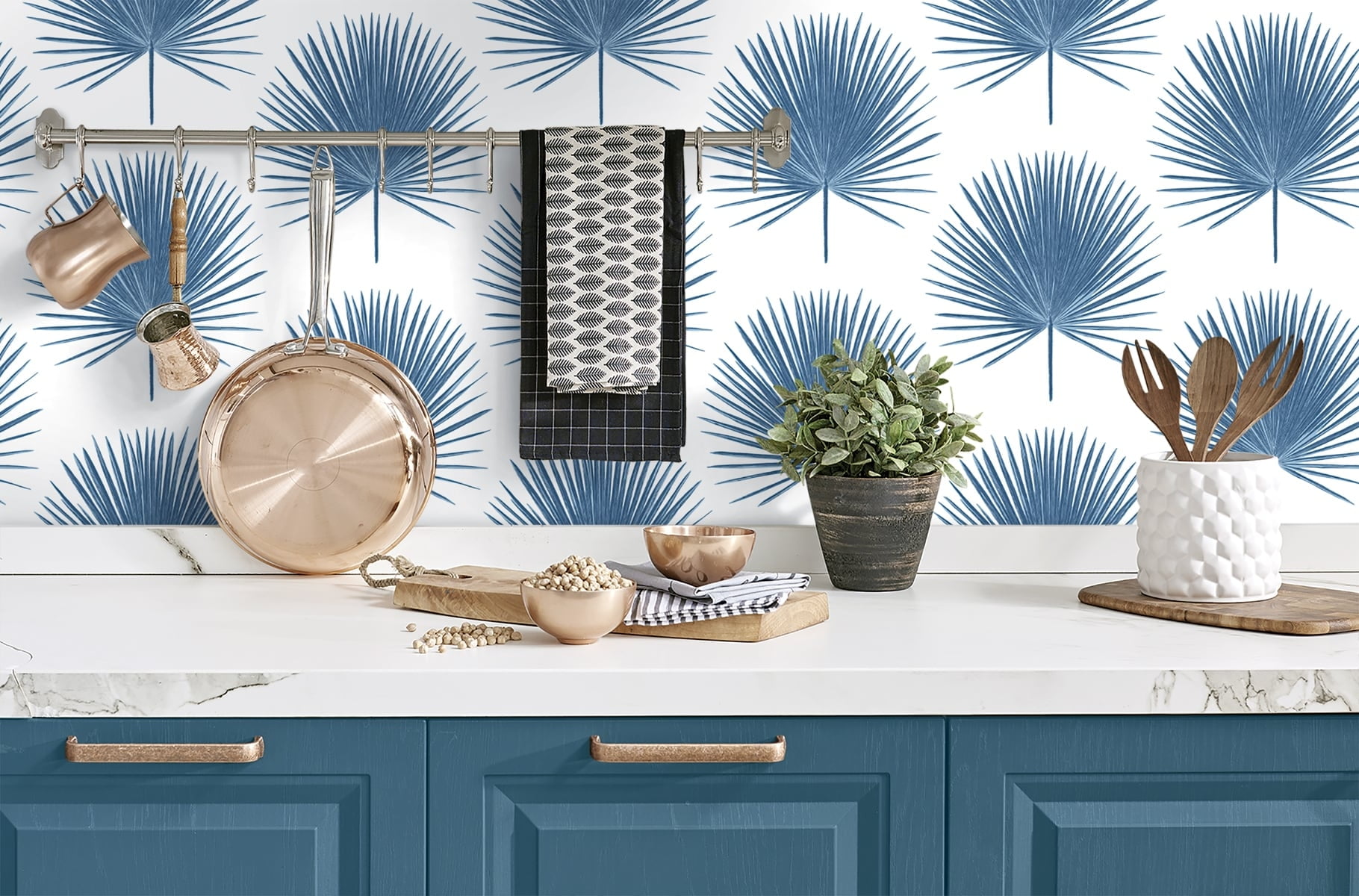 Invite a trendy, coastal look to your wall and furniture surfaces with this palmetto palm leaf peel and stick wallpaper from NextWall! Printed on smooth vinyl, our self-adhesive designs are perfect for renters and homeowners looking for an instant, DIY transformation to their interior space. With the same qualities and durability as permanent wallpaper, our products offer an easy, fresh alternative to decorating with very little commitment. No water, no mess, no sticky residue!