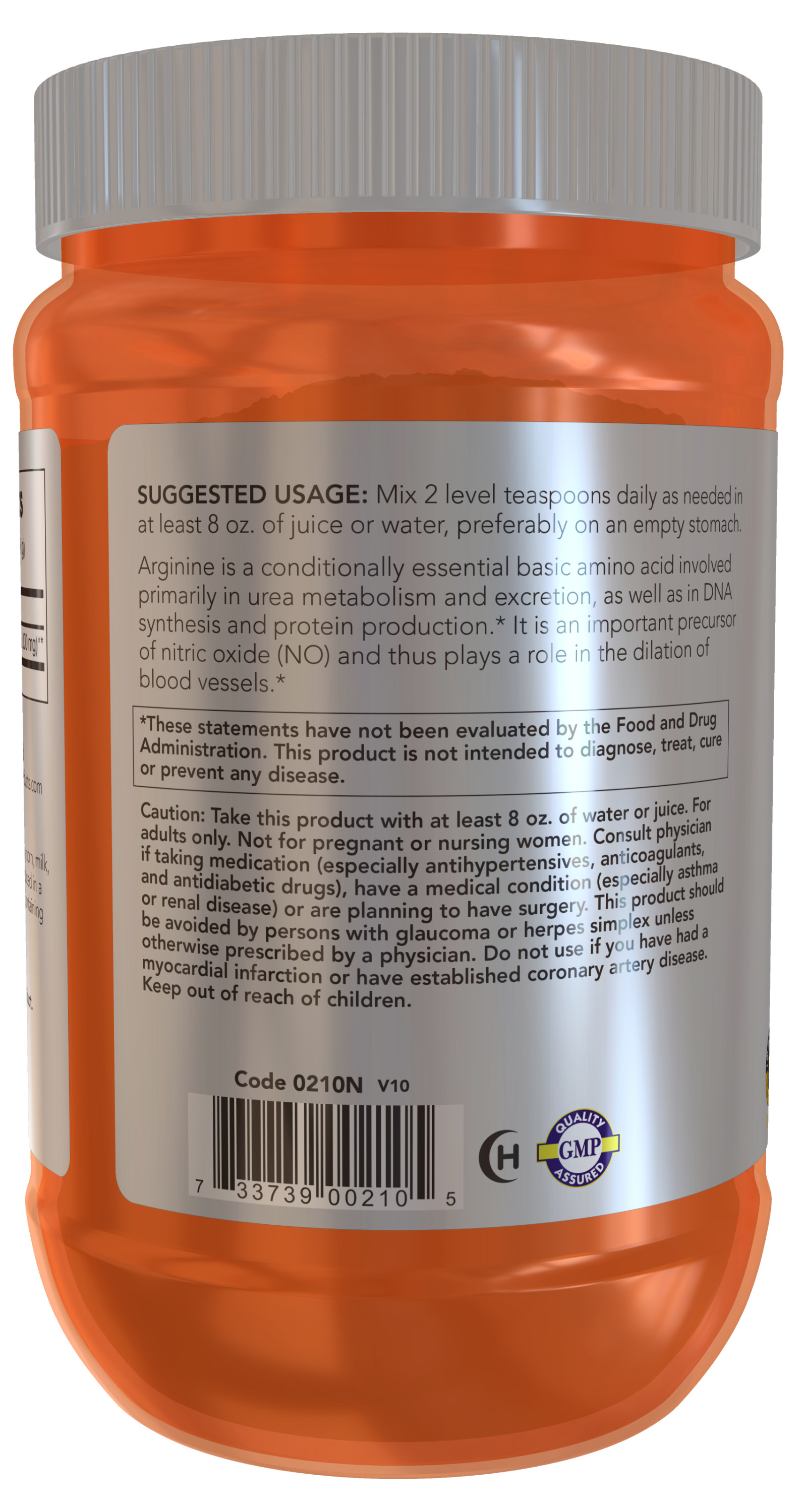 NOW Sports Nutrition, L-Arginine Powder, Nitric Oxide Precursor, Amino Acids, 1-Pound, NOW® L-Arginine is pharmaceutical grade. Arginine is a conditionally essential basic amino acid involved primarily in urea metabolism and excretion, as well as in DNA synthesis and protein production.* It is an important precursor of nitric oxide (NO) and thus plays a role in the dilation of blood vessels.* Natural color variation may occur in this product.