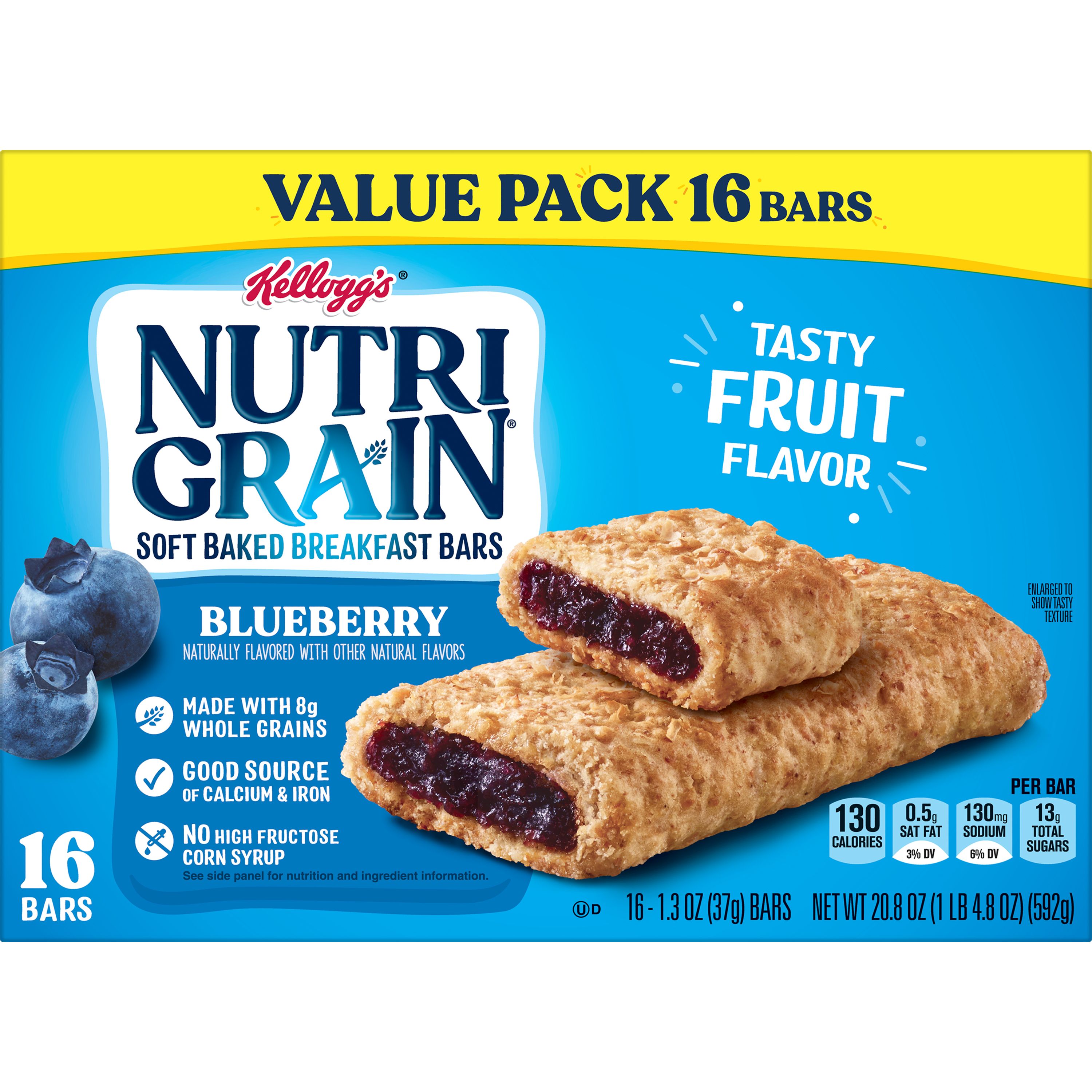 Come prepared for busy mornings with Nutri-Grain. Includes one, 20.8-ounce box containing 16 Nutri-Grain Blueberry Breakfast Bars. These delicious and convenient blueberry-flavored bars are a great start to any morning and help empower parents and kids to win the day. With tasty fruit flavor that kids will love, 8g of whole grains, and a good source of 8 vitamins and minerals, these bars are a balanced addition to any breakfast. Grab a pouch for the kids to eat at home in the morning; pack a snack for the bus on the way to school. Nutri-Grain Soft Baked Breakfast Bars not only make a tasty addition to your morning, they’re also a great choice when you’re packing gift baskets or care packages; the delicious options are endless. With this convenient and perfectly baked bar, savvy parents and kids will feel prepared for whatever the day may bring.
