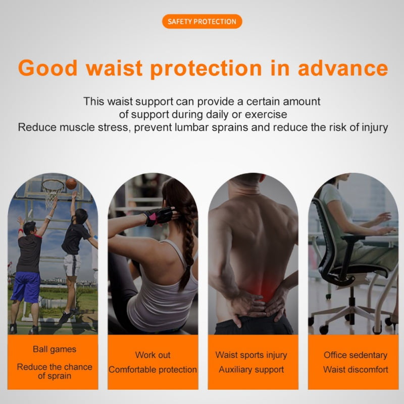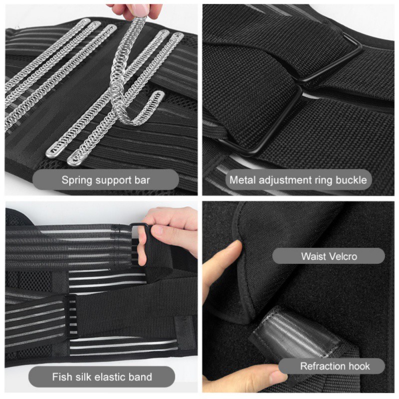 - 4. STRENGTHEN SUPPORT DESIGN – DESIGNED SPECIFICALLY FOR THE BACK – Four support bars which provides different focused force to the lower back (waist) and are reinforced with different degrees of hardness. The Oblique arc design is made to fit the lower back curve to disperse the pressure on the lumbar muscles and lumbar spine then it can support decompression which effectively reduce workplace and sport injuries. We guarantee the highest quality product because your health deserves the best!