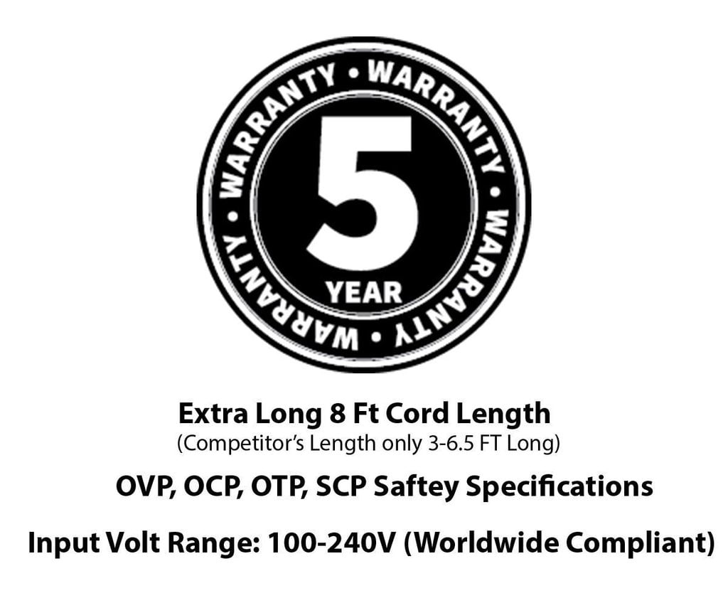 High Quality 8 Foot Long AC Power Cord / OVP, OCP, SCP Protection (OVP: Over Voltage output Protection. OCP: Over Current output Protection. SCP: Short Circuit output Protection) / FREE RETURN SHIPPING / 5 YEAR FREE REPLACEMENT WARRANTY / 3RD PARTY NON OEM PARTS /