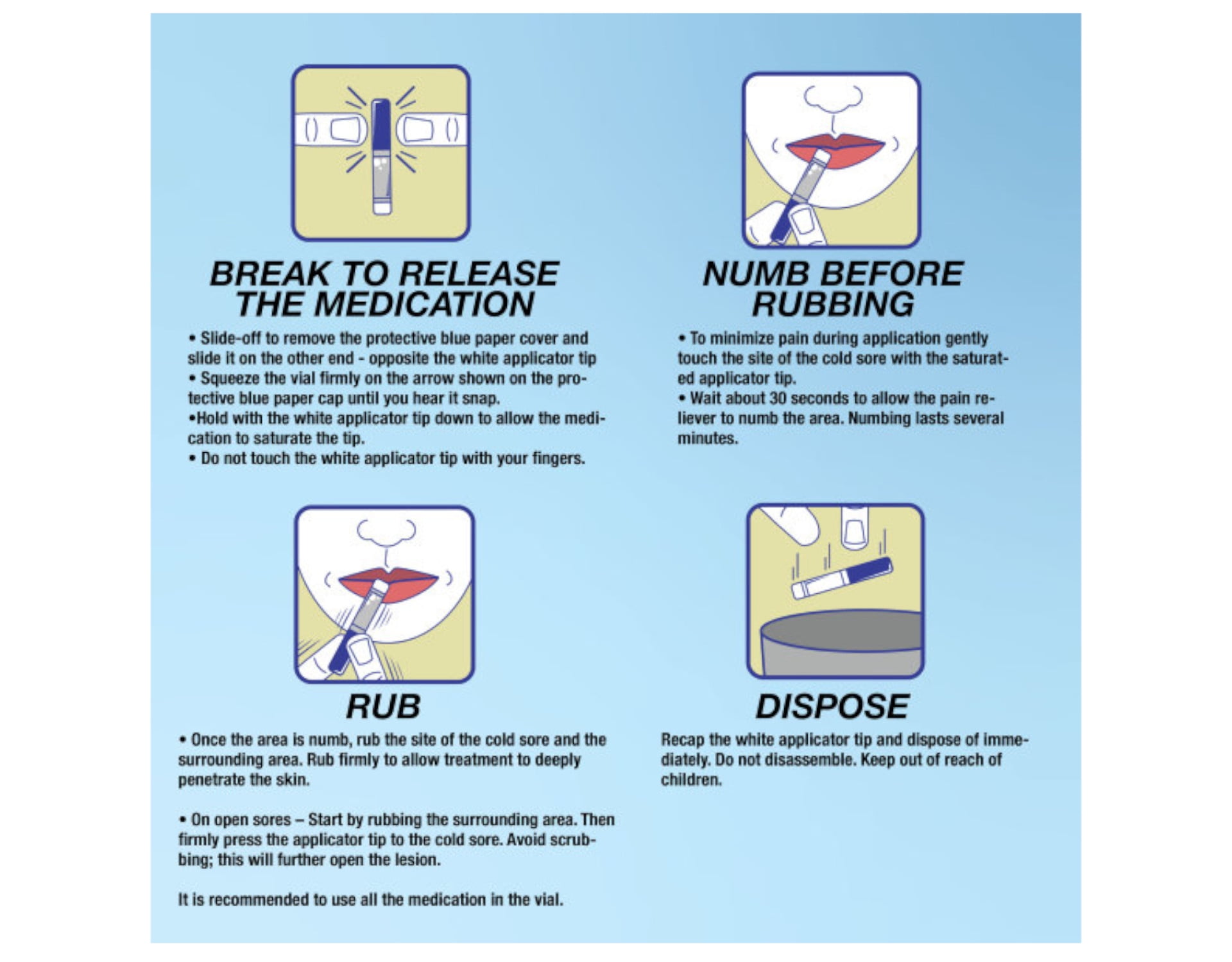 - TOUCH- FREE APPLICATOR: Unique application system is designed so you don’t have to touch your cold sore or fever blister with your fingers. Use the applicator to apply our treatment right where you need it most.