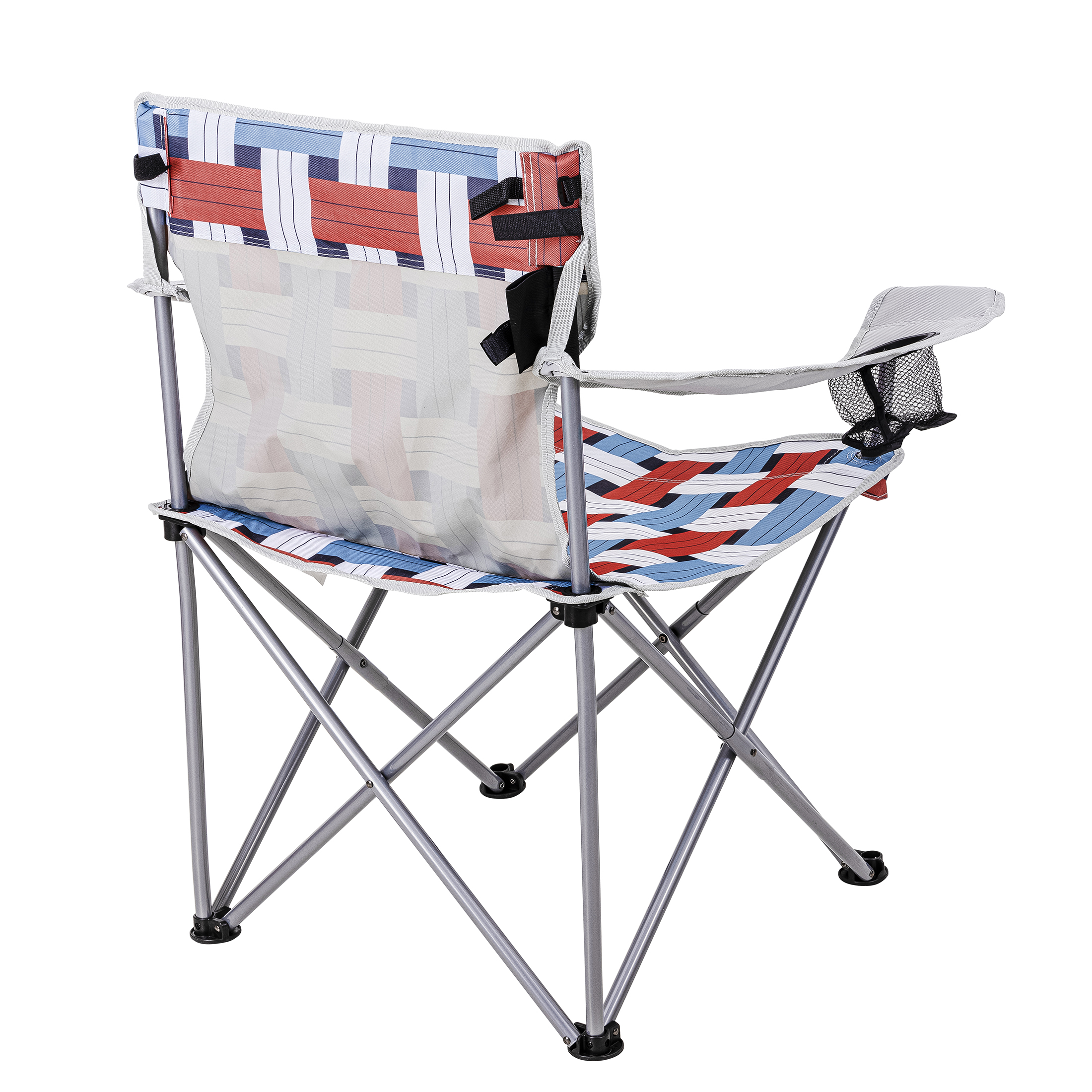 Kick back retro style with the Ozark Trail Oversized Retro Weave chair with Cooler! The chair features a built-in cupholder and a 9-can insulated cooler with a dual zipper with an attached aluminum bottle opener. The durable steel frame has a 400-pound weight capacity for adults. With a built-in universal umbrella holder, you can seek shade and stay dry from the rain. This chair collapses to a stand-alone position and features built-in carry straps for easy transport with or without the carry bag. The Ozark Trail Oversized Retro Weave Chair is the perfect chair for any camping trip, concert, sporting event or backyard barbecue!