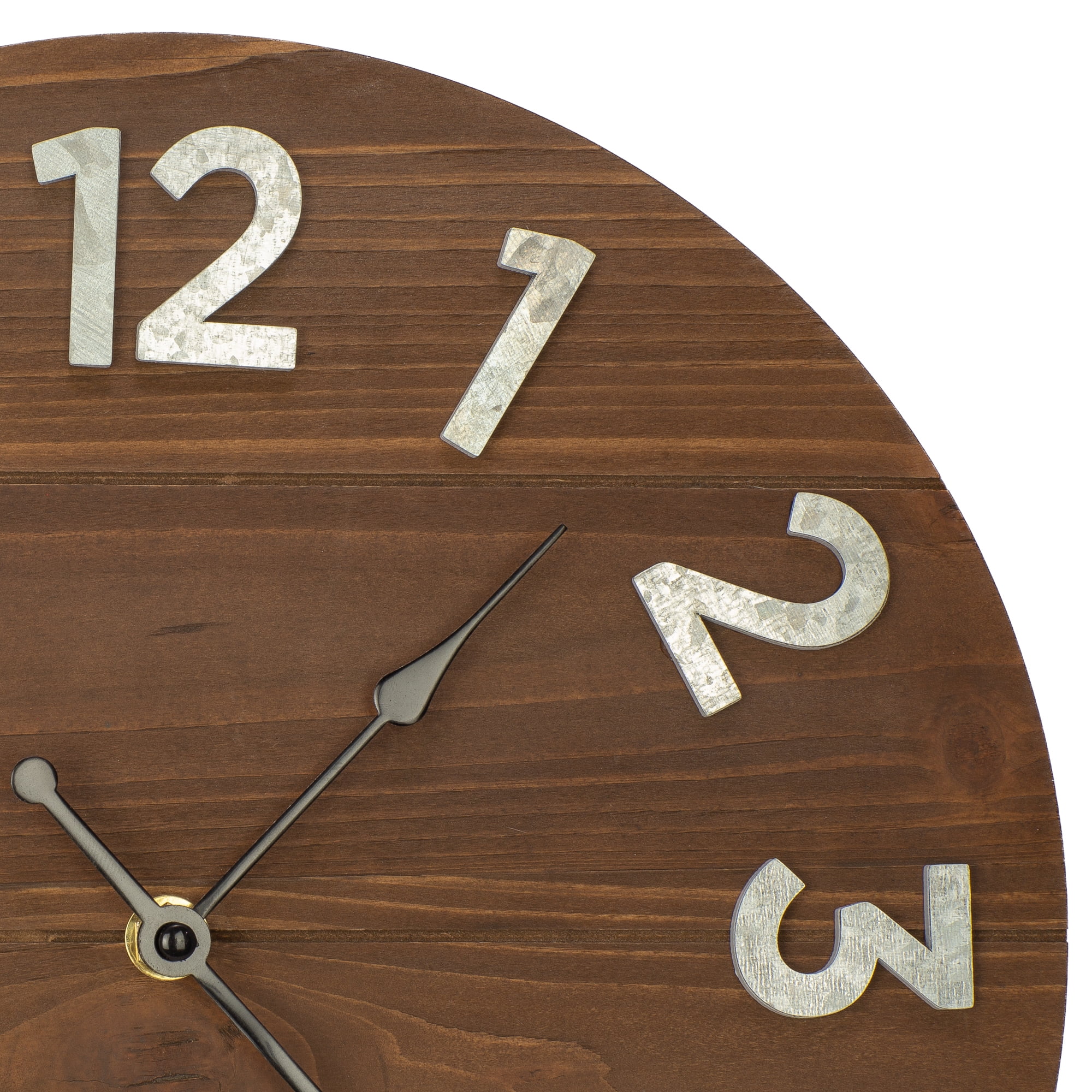 - Raised clock numbers are finished in a galvanized metal